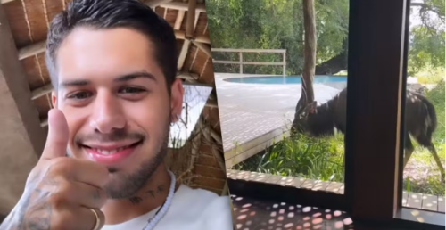O que era para ser um stories tranquilo mostrando a hospedagem em que está na África do Sul, em viagem que faz ao lado de sua família, acabou virando um registro para lá de inusitado na rede social de Zé Felipe.