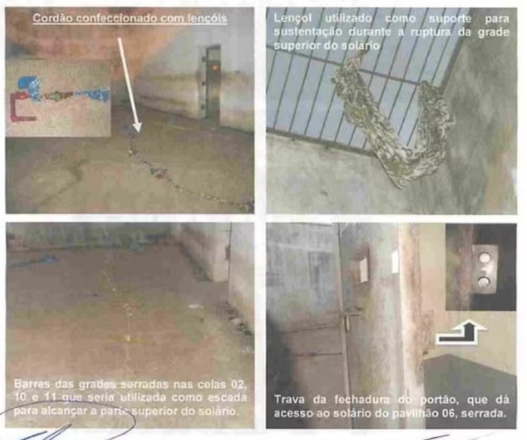 A fuga foi frustrada por agentes penais que perceberam a movimentação nas celas. Nas imagens contidas nos documentos é possível ver o buraco feito pelos criminosos nas grades das celas.