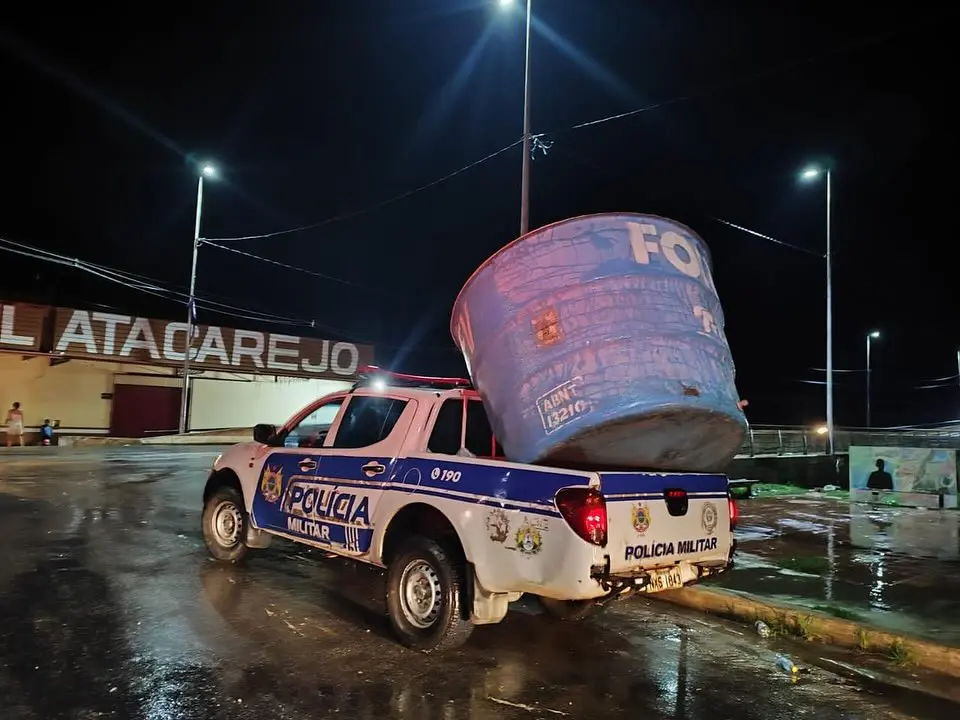 Ao avistar a viatura policial, os dois correram, deixaram a caixa d’água de 3 mil litros e fugiram pulando no Rio Juruá.