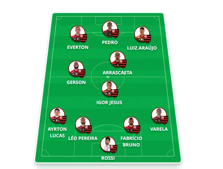Provável escalação: Rossi, Varela, Fabrício Bruno, Léo Pereira e Ayrton Lucas; Igor Jesus, Gerson e Arrascaeta; Luiz Araújo, Everton Cebolinha e Pedro.