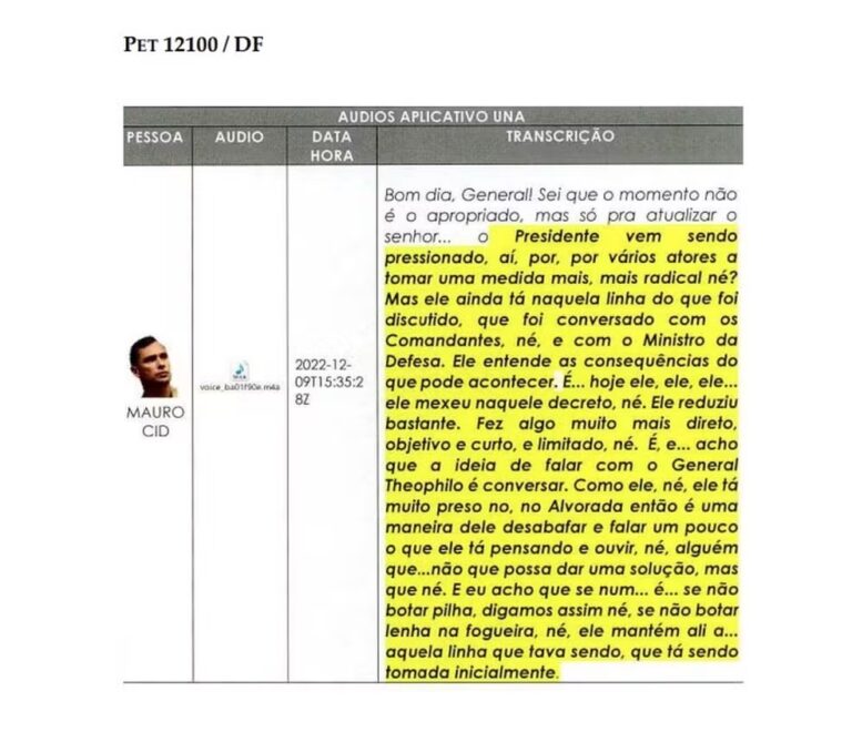 Segundo o documento da PF, Mauro Cid afirmou em áudio que tinha hacker em busca de uma “bala de prata” que sustentasse um golpe de estado.