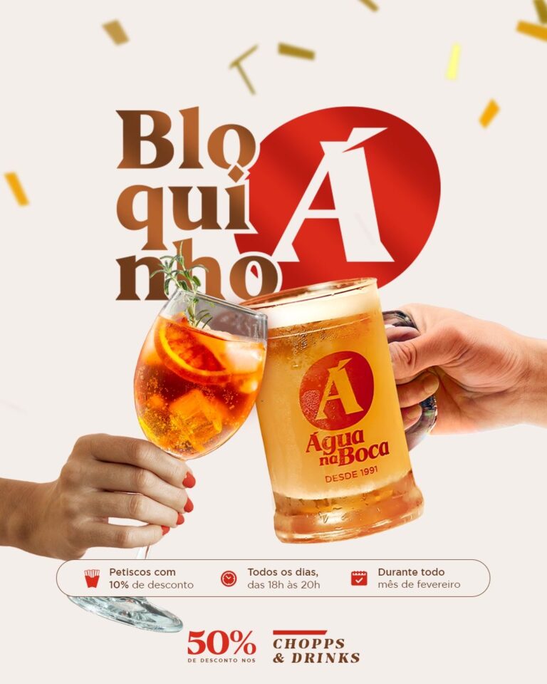 Com 10% de desconto em todas as entradas e 50% de descontos em chopps e bons drinks, o cliente pode aproveitar o Carnaval em grande estilo e conforto, no Bloquinho A, da Água na Boca.