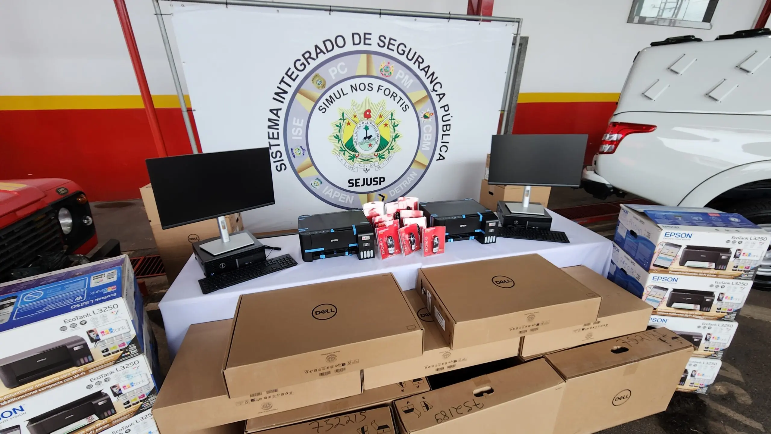 Já para a Sejusp, foram entregues 10 viaturas, computadores, impressores e tabletes, com um investimento que ultrapassou os R$ 4 milhões. O secretário de Segurança Pública, coronel Américo Gaia, explicou que os recursos para compra dos novos equipamentos e viaturas são frutos de convênios.