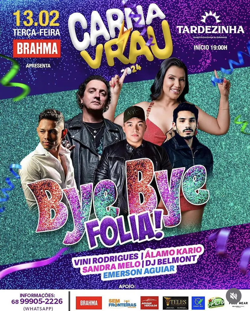 O último dia do Carnavrau inicia às 19h, com diversas atrações, entre elas, Vini Rodrigues, Álamo Kario, Sandra Melo, Dj Belmont e Emerson Aguiar.