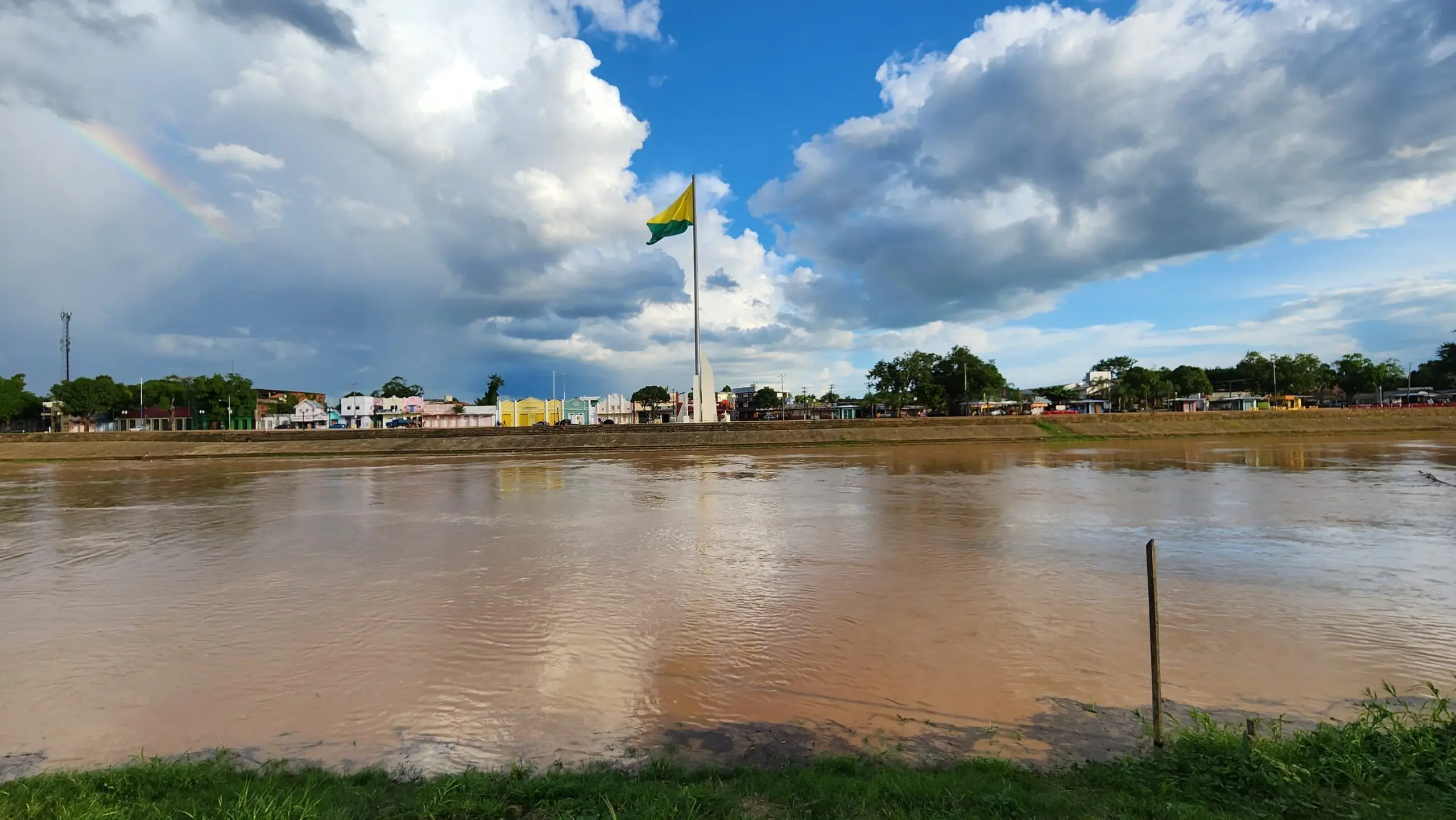 Após fortes chuvas que caíram sob a bacia do Rio Acre, o afluente chegou aos 10,56 metros na manhã desta segunda-feira (19), na capital acreana, Rio Branco.