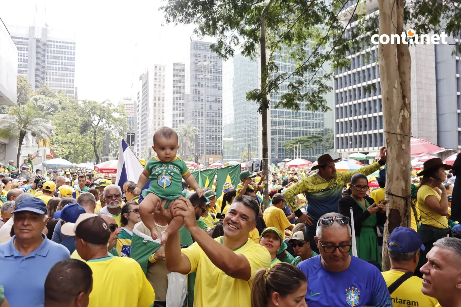 Durante a manifestação em apoio ao ex-presidente Jair Messias Bolsonaro, é possível observar diversas famílias participando do ato. Desde crianças acompanhadas de seus pais até idosos que fazem questão de participar de perto, apertando a mão de políticos apoiadores que passam pela grade de segurança a caminho do trio elétrico.