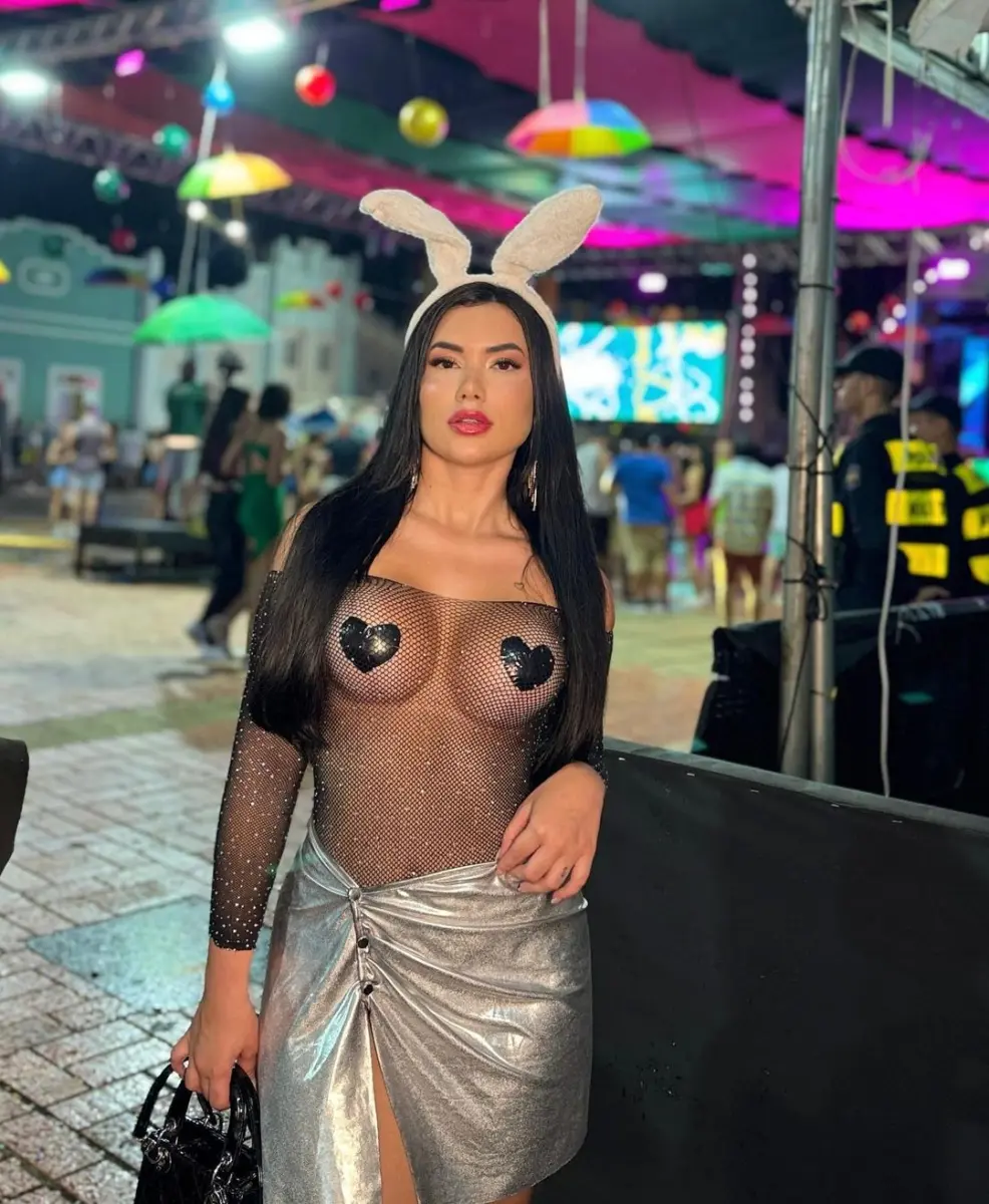 A peça fez com que a influenciadora ficasse com os seios à mostra, com os mamilos tapados apenas por um adesivo preto em formato de coração.