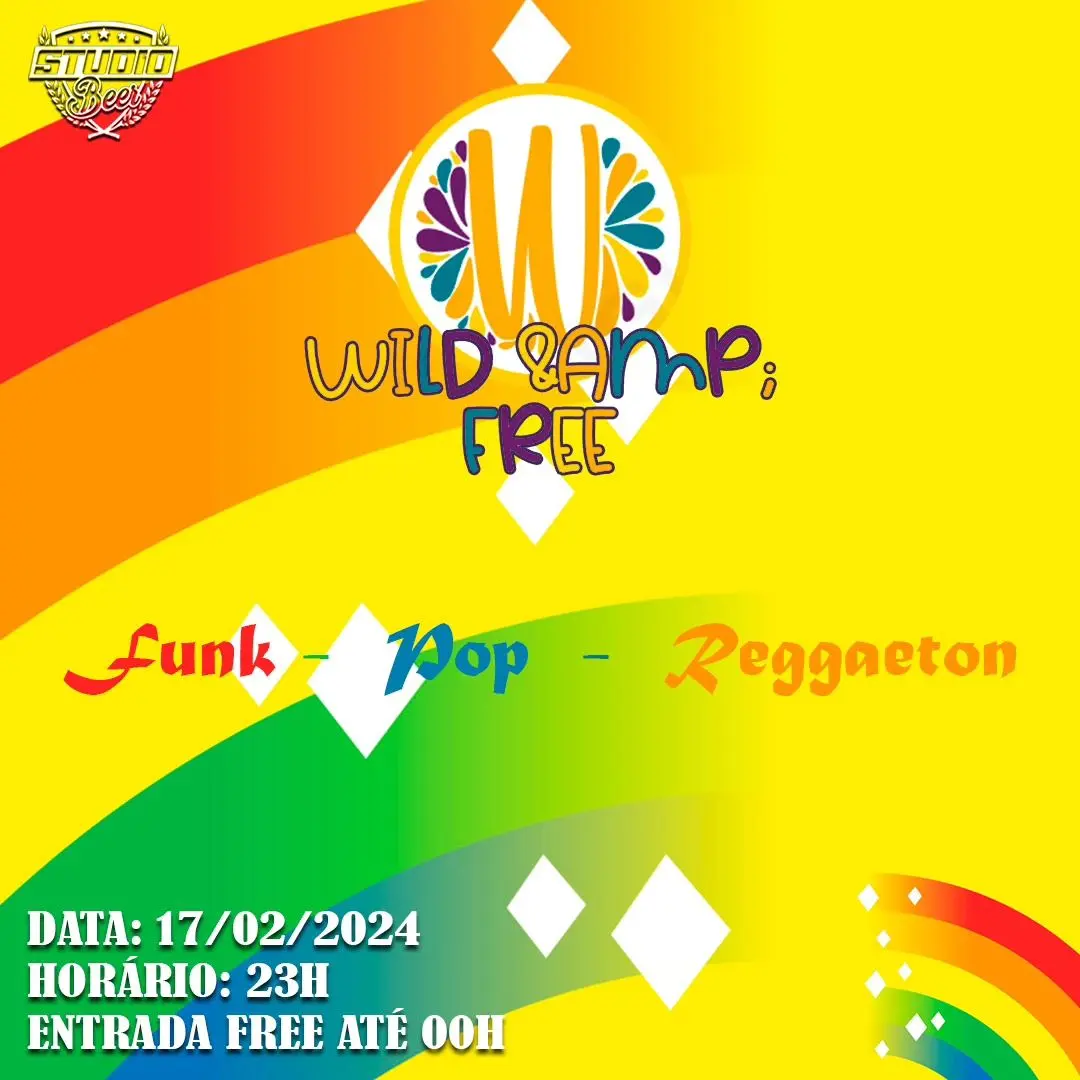 “Wild & amp; Free”, a ressaca do carnaval! No sábado (17), o Studio Beer será palco dessa festa incrível, a partir das 23h com entrada grátis até meia-noite! A “Wild & amp; Free” promete ser uma noite de muita diversão, bons drinks e energia contagiante.