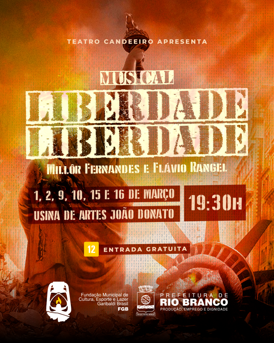 O que é ser livre? Durante este musical cada espectador é levado a questionar sua definição de liberdade quando conhece a ausência dela. Este musical é realizado pelo grupo de Teatro Candeeiro que atua no Acre desde 2016.