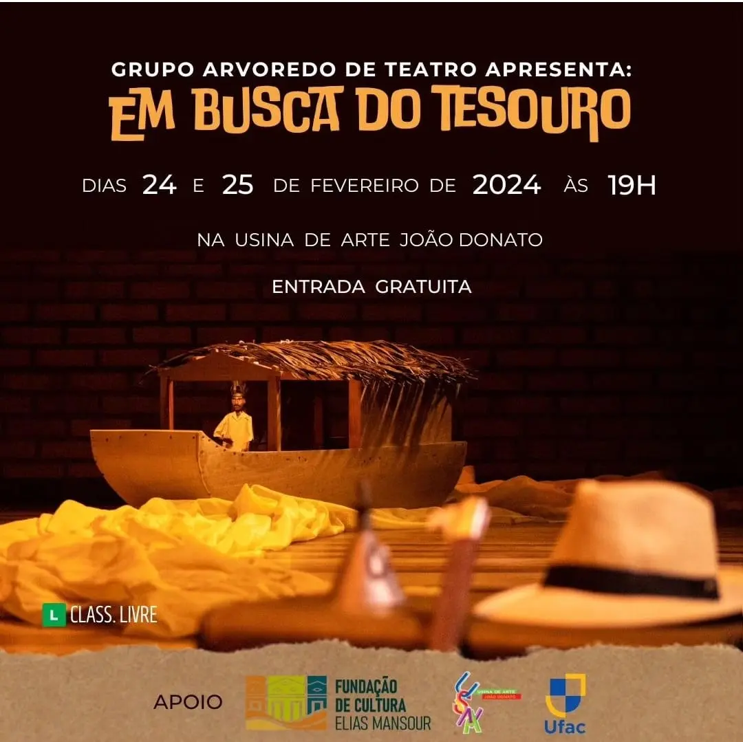 Grupo Arvoredo de teatro apresenta este espetáculo que tem como tema a jornada de José Gabriel da Costa, o mestre Gabriel, que como tantos outros partiram do Nordeste até os Seringais da Amazônia em busca de um tesouro.