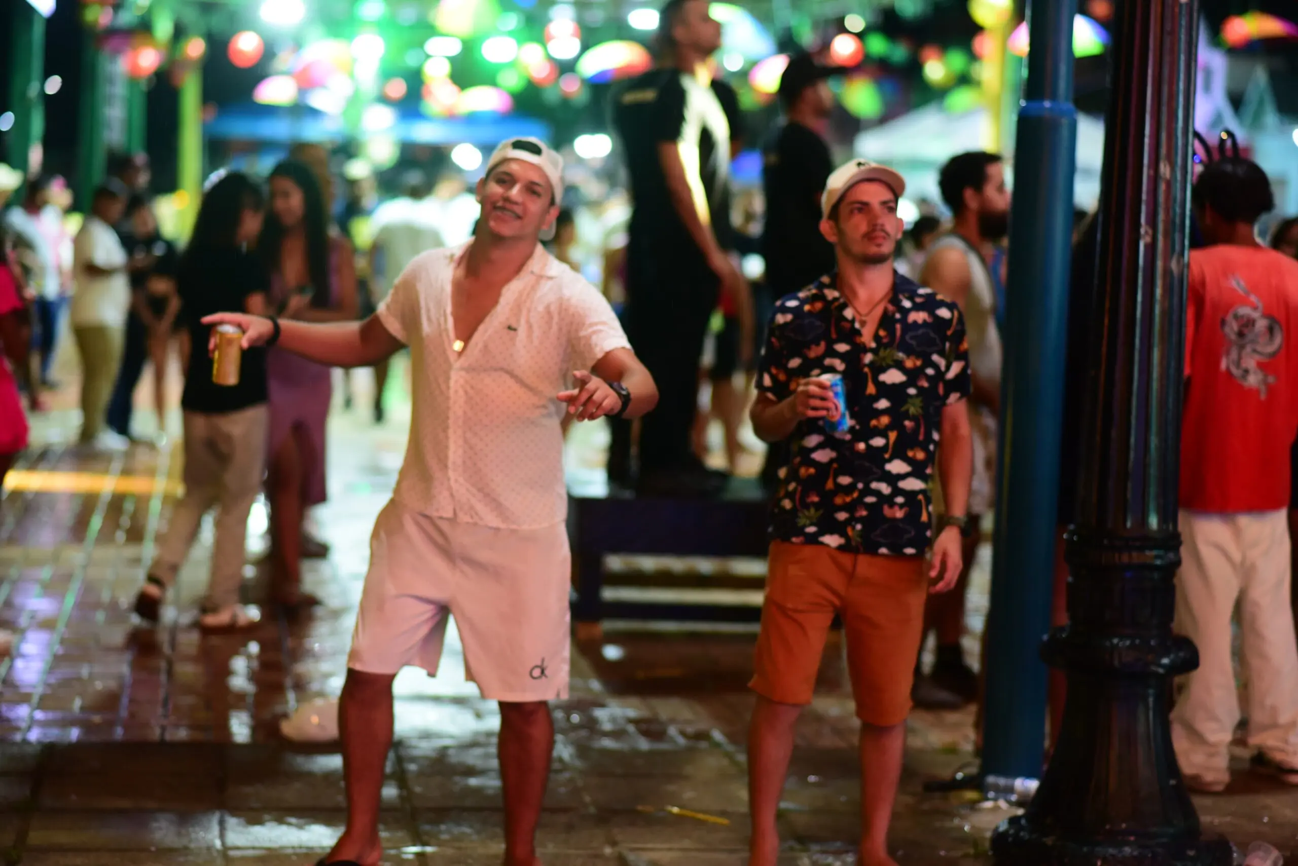 Nem a forte chuva foi suficiente para acabar com a animação da festa. Os foliões curtiram o show do cantor Ferdiney Rios e Banda, no Calçadão da Gameleira, aproveitando a oportunidade para se refrescar em meio ao calor de Rio Branco.