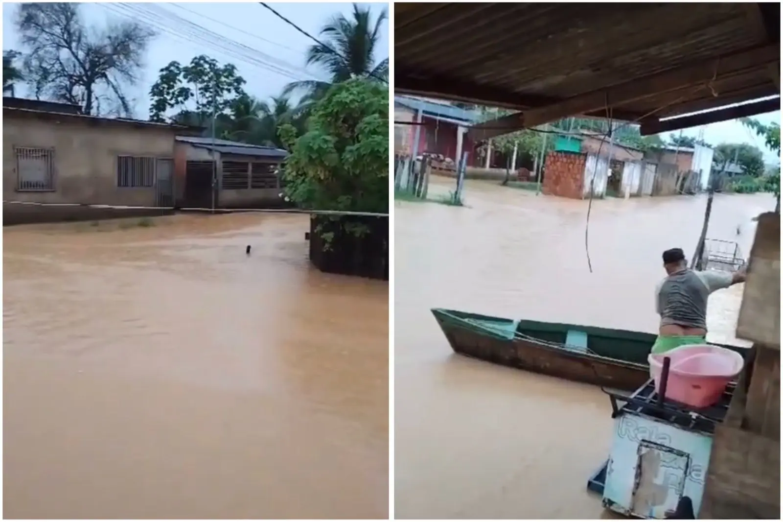 Os moradores já estão precisando utilizar canoas para entrar e sair de suas casas, como mostram as imagens.