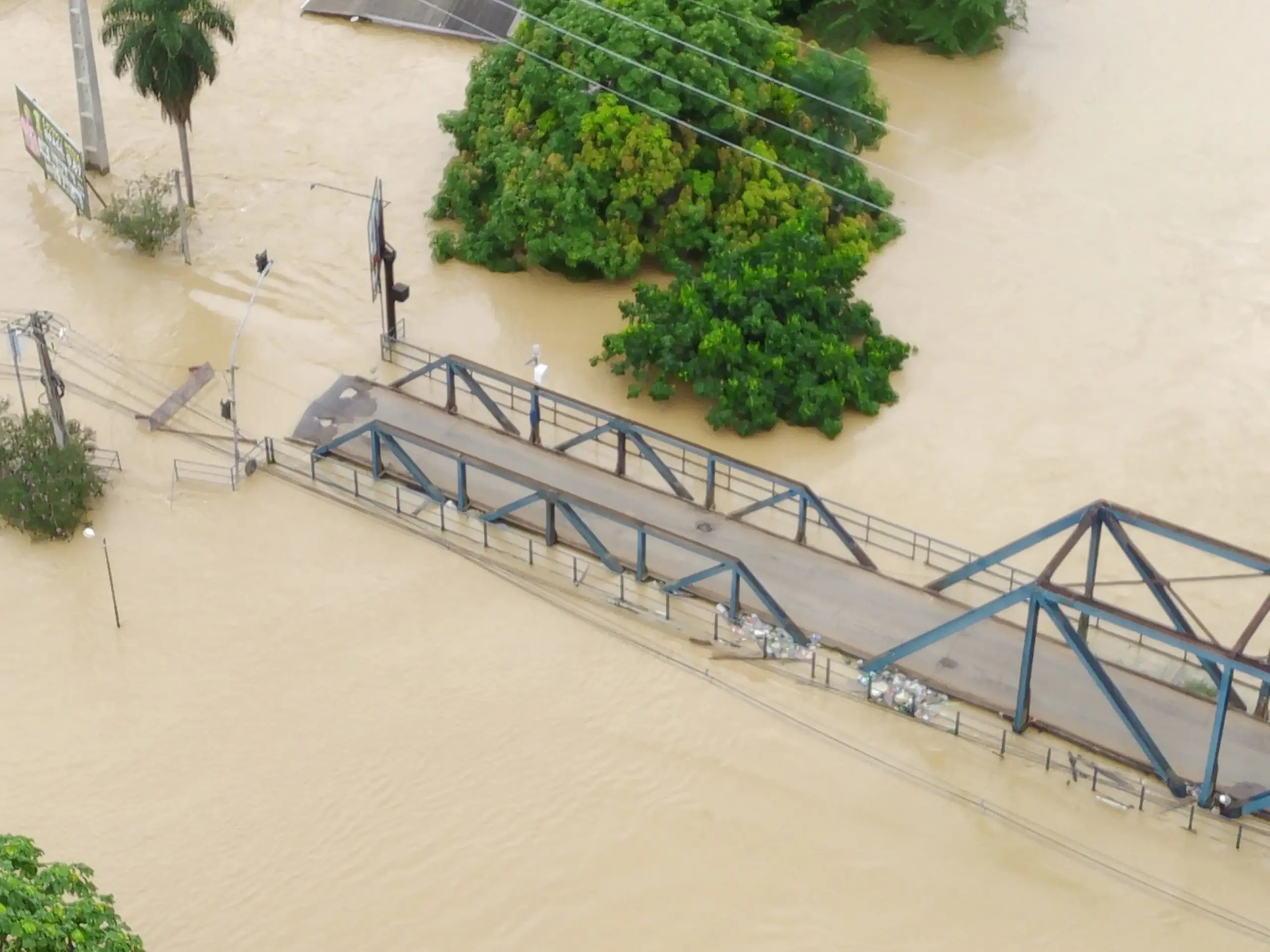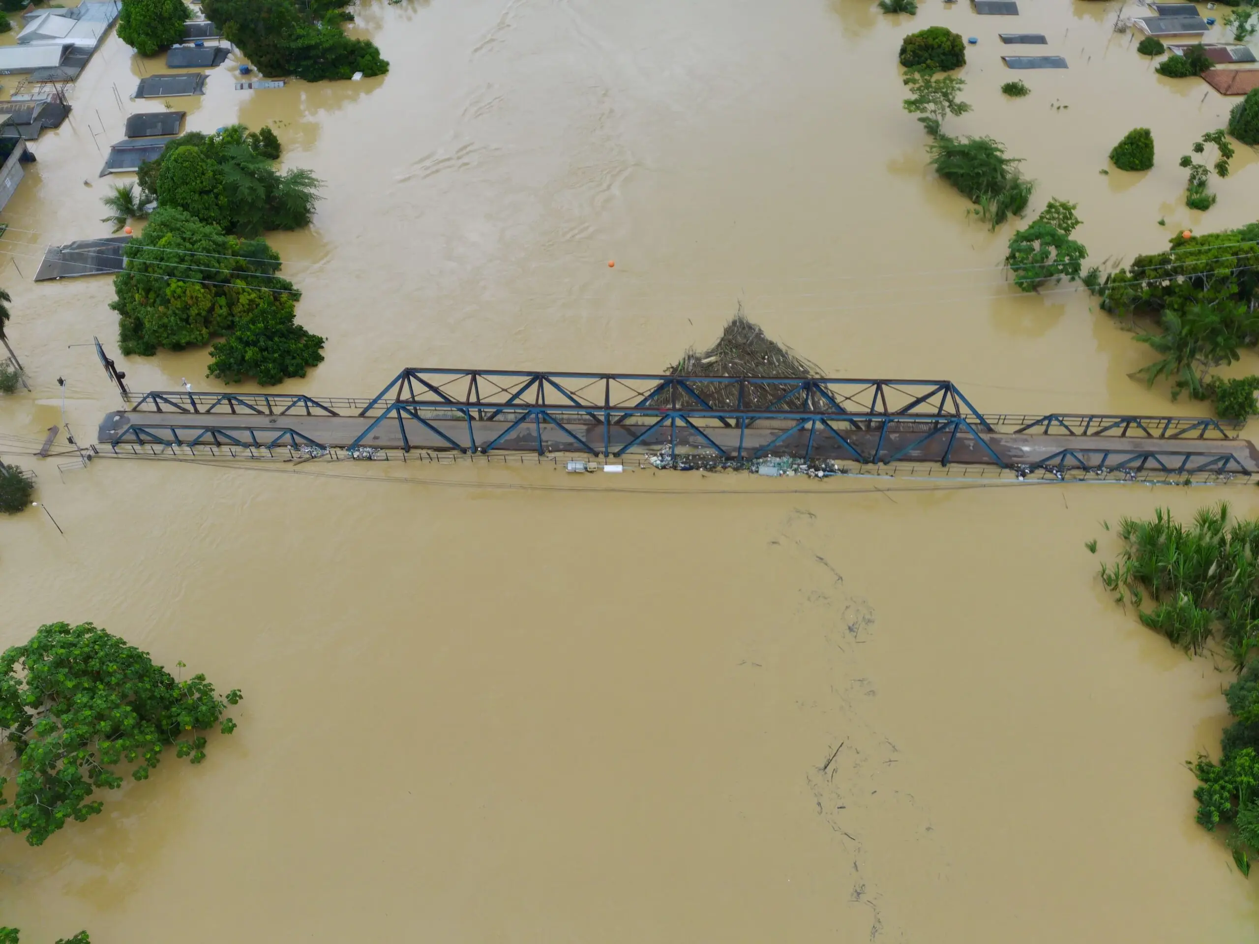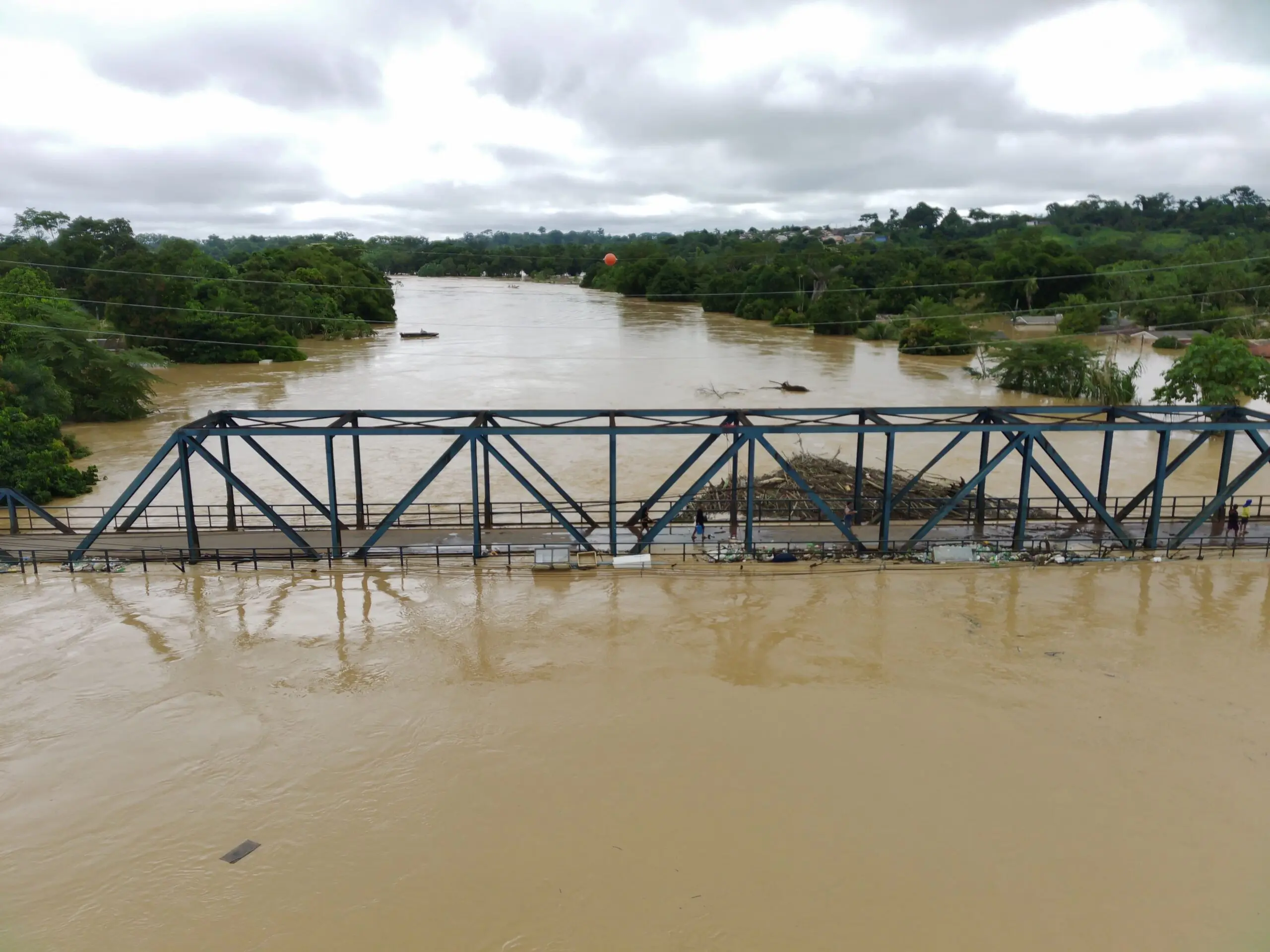 Imagens enviadas à reportagem do ContilNet mostram a situação da ponte José Augusto, que já está coberta de água e com muitos balseiros entulhados na estrutura. Confira: