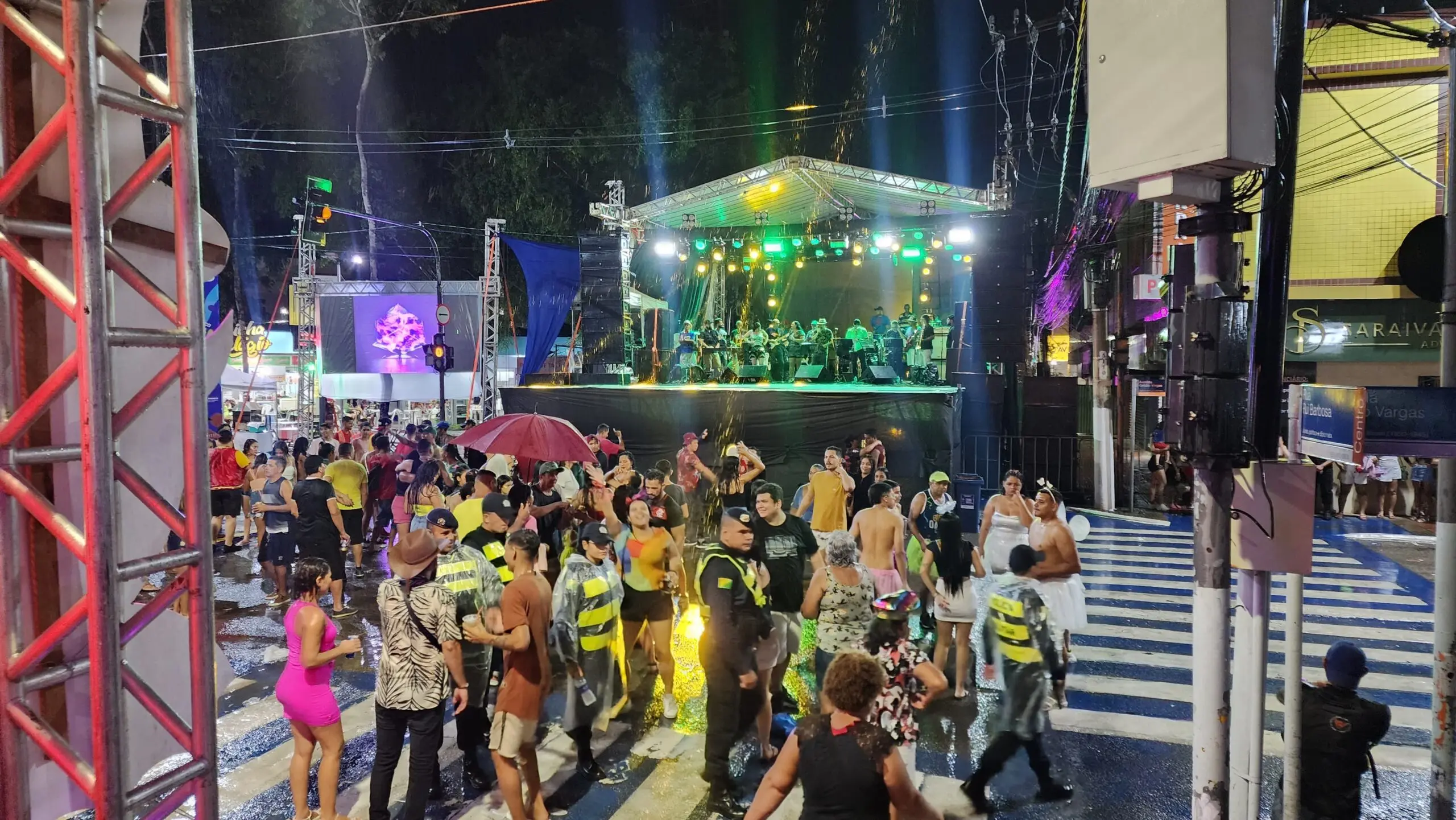 A terceira noite de Carnaval 2024 em Rio Branco foi marcada pela chuva, que não desanimou os foliões no Carnaval da Família, no Calçadão da Gameleira, e no Rio Branco Folia, na Praça da Revolução. Ao som de bandas locais, os foliões curtiram a folia e dançaram muito.