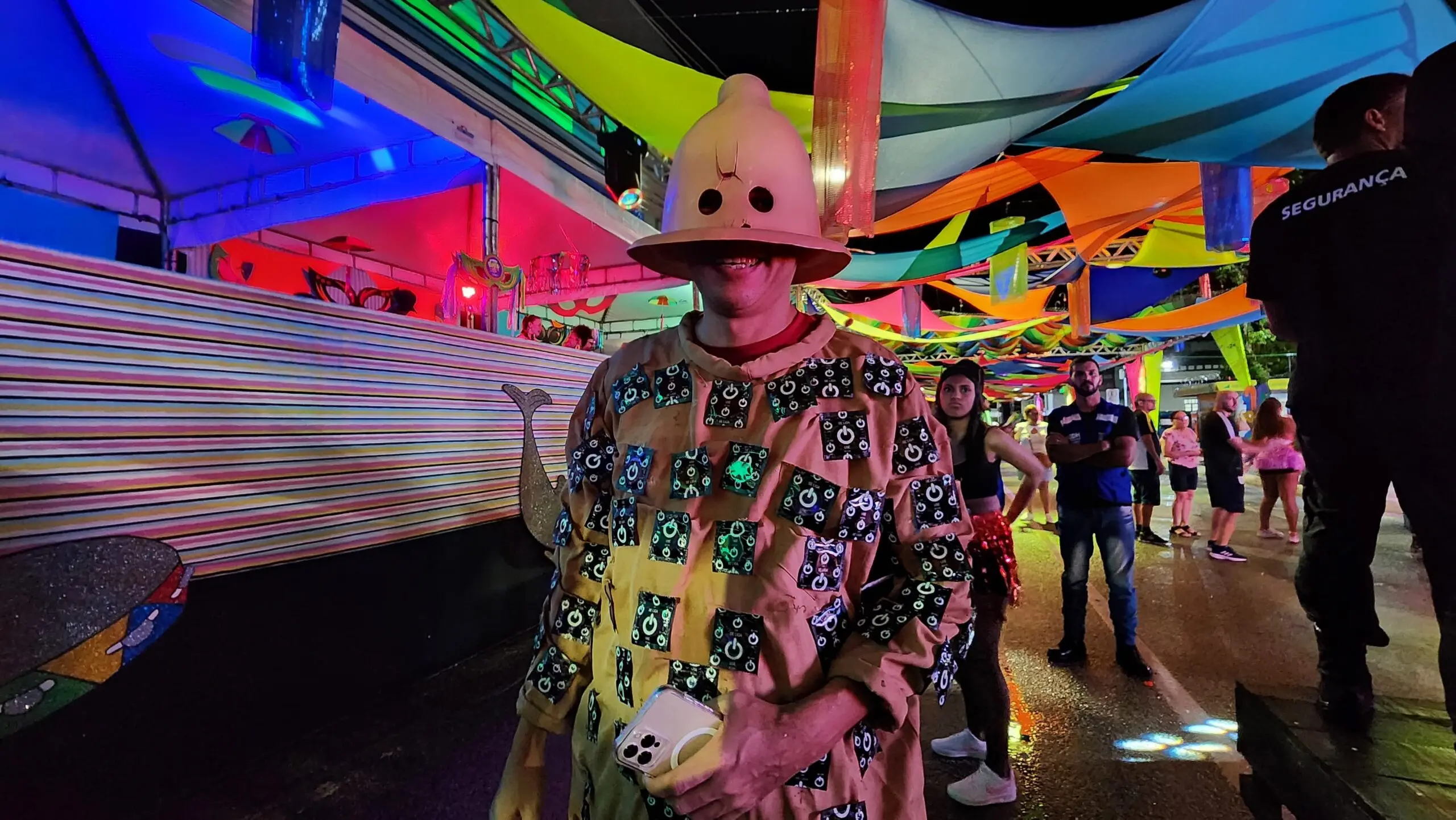 - James foi fantasiado de camisinha e usou 50 preservativos para a fantasia/Foto: Juan Diaz/ContilNet