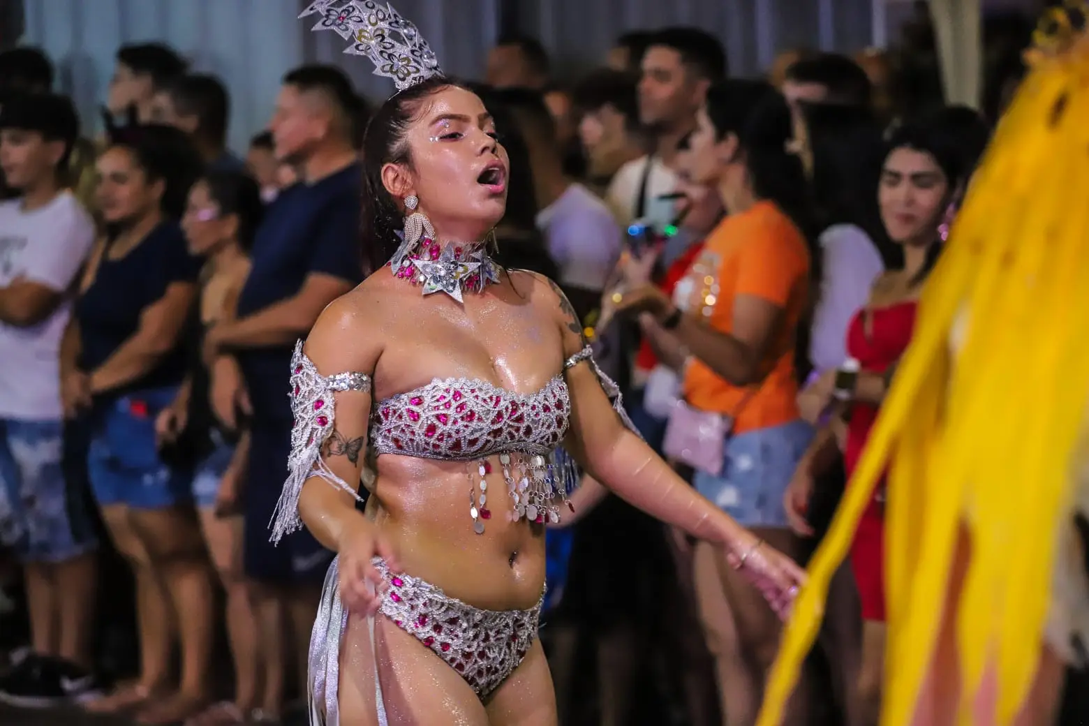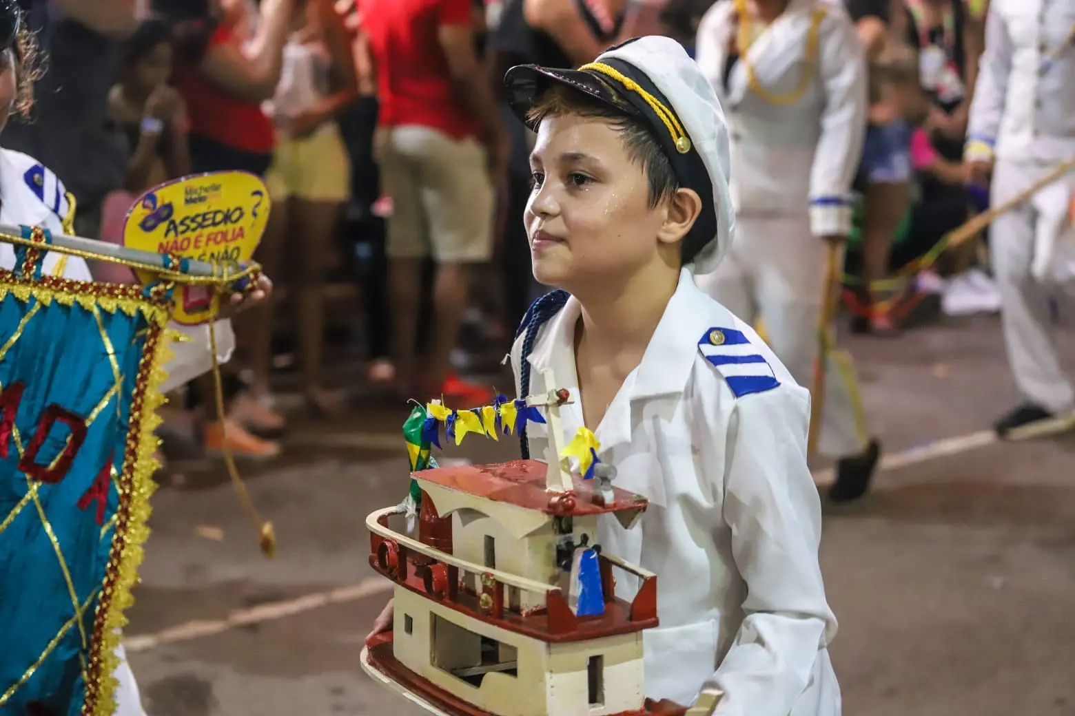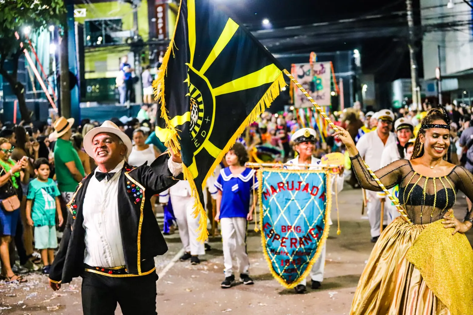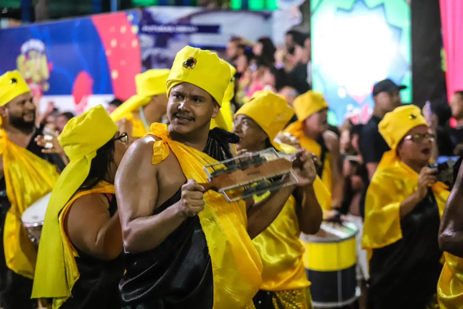 Apesar da dificuldade, o bloco retomou a energia e, com seus 500 integrantes, levou uma mistura cultural ao público com muita empolgação. As sete notas musicais foram representadas no abre alas, que foi seguido pela participação da Marujada Brag Esperança e o Jabuti Bumbá, que trouxeram a cultura local para o desfile.