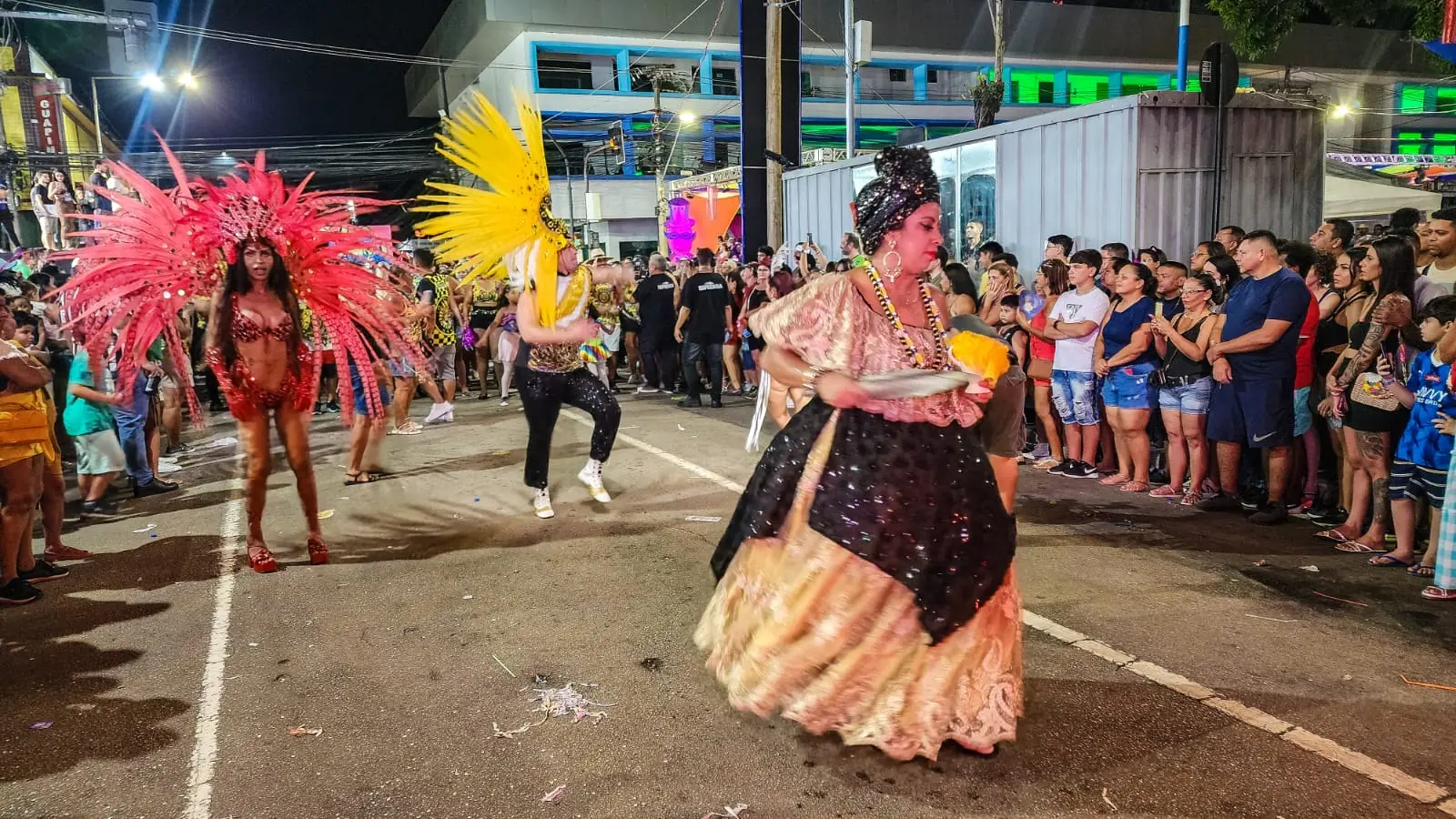 Pela arquibancada montada em frente ao Colégio Estadual Barão do Rio Branco (CEBRB), a população vibrou com bateria comandada pela Rainha xapuriense Maria Luiza. Uma ala de foliões vestidos com o abadá do bloco conseguiram manter a energia no final do desfile, que teve pouco mais de 37 minutos de duração.