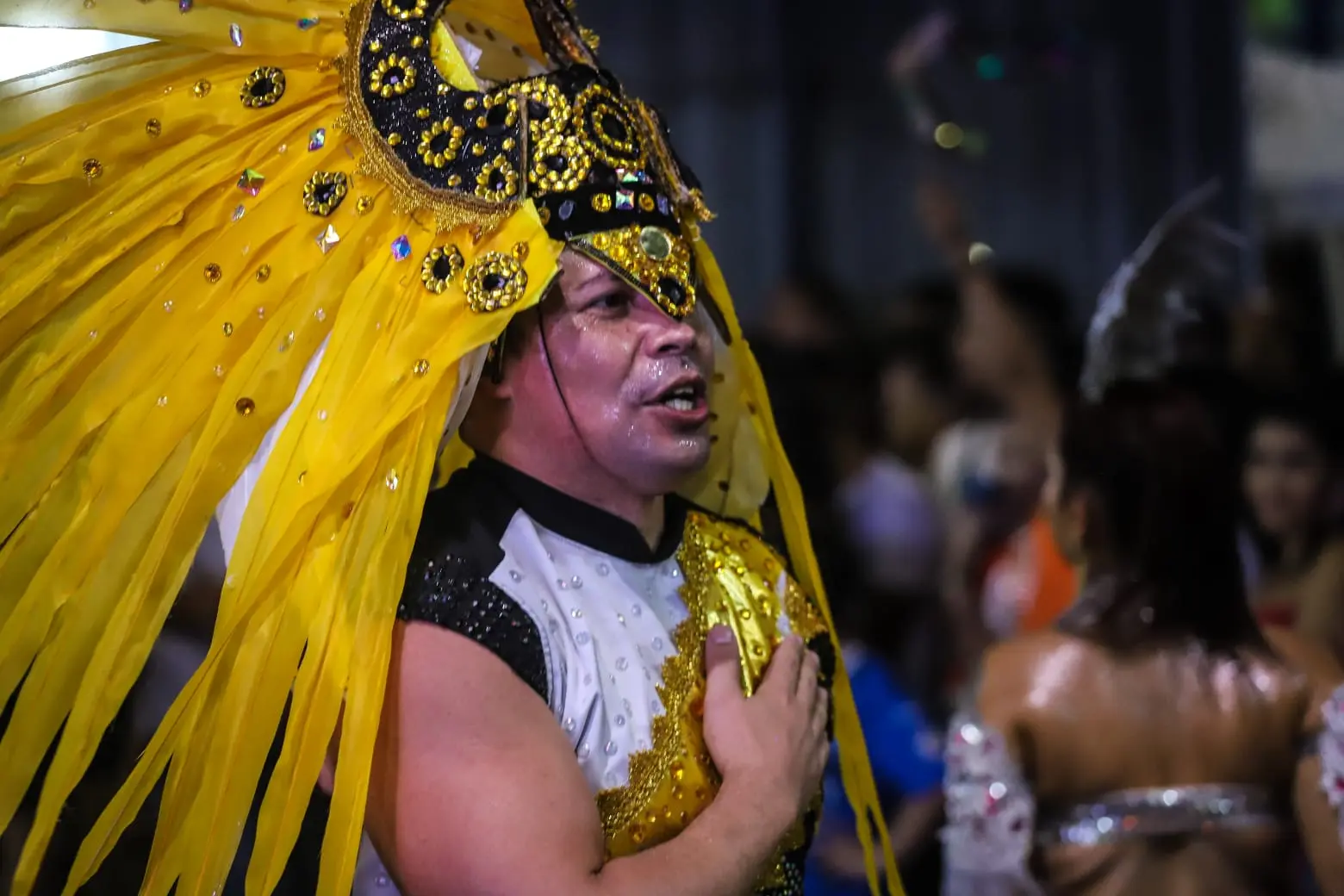 “Eu quero deixar claro que o povo da organização está gravando o desfile, mas não está trabalhando e atrapalhando o desfile do bloco. Vai entrar na avenida, mas tá sendo atrapalhado por conta da organização. Eu peço desculpas em nome da comunidade, Klosbe, e à toda as pessoas que eu conheço da organização, mas por favor, ajudem o nosso bloco a desfilar. Afastem gente, por favor! É o que eu peço. É um pedido da comunidade. Deixem a comunidade desfilar!”, pediu o diretor.