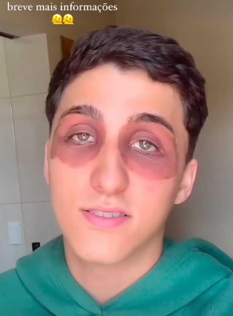 O vídeo de um jovem de 20 anos intrigou a web. O motivo? Gustavo Henrique acordou com a região dos olhos manchadas, com a cor esverdeada. Pouco tempo depois, os olhos ficaram muito inchados.