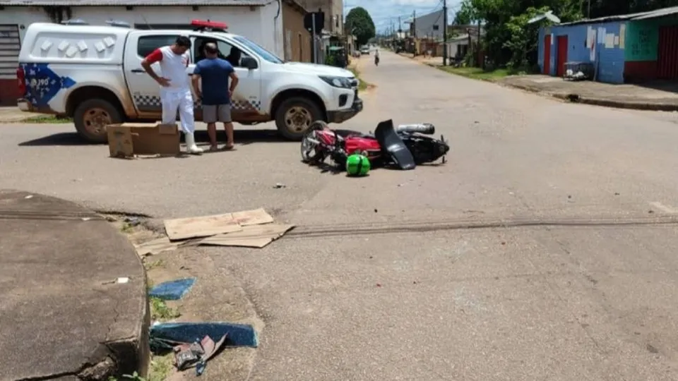 O motociclista transitava pela Rua Aruba sentido à Avenida Mamoré, quando um idoso que conduzia o carro Virtus, invadiu a preferencial causando a colisão.
