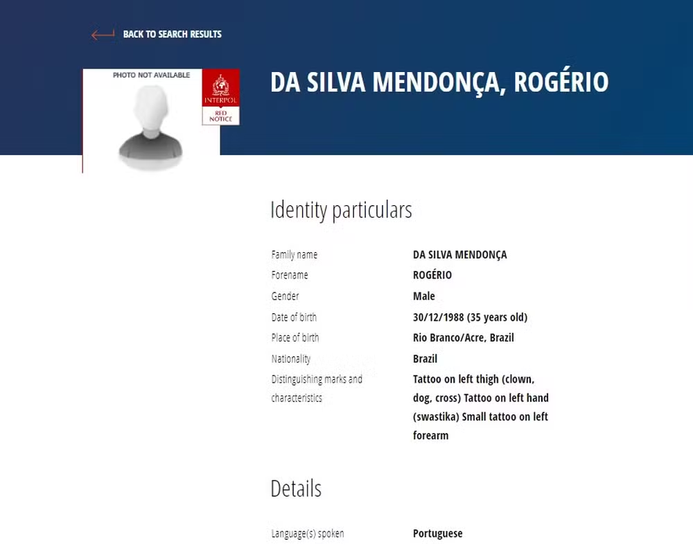 Veja o perfil de Deibson Cabral e Rogério Mendonça na Interpol: