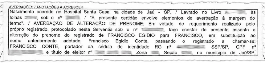 O funcionário público Francisco Conte Ficho, de Jaú (SP), enfim acabou com o pesadelo que o acompanhava desde criança. Em outubro, aos 33 anos de idade, ele conseguiu fazer duas mudanças significativas no próprio nome. O prenome diminuiu, e o sobrenome aumentou. Antes das alterações, ele se chamava Francisco Egídio Conte.