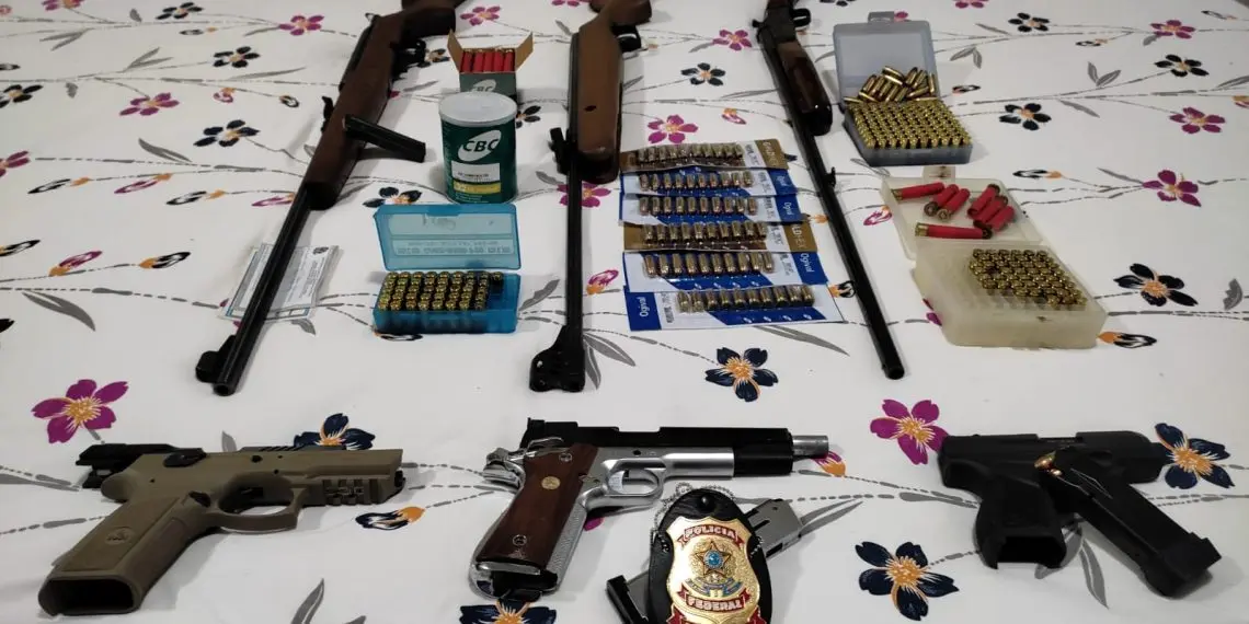 Foram apreendidas munições e armas, sendo uma de uso restrito