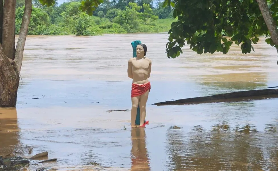 O Rio Acre atingiu a cota de 15,80 metros por volta do meio dia desta quarta-feira (28) em Xapuri e inunda até o momento seis bairros. Na praça central da cidade, onde fica localizada a estátua de São Sebastião, padroeiro do município, as águas tomaram conta do local e já começa a cobrir os pés do santo.
