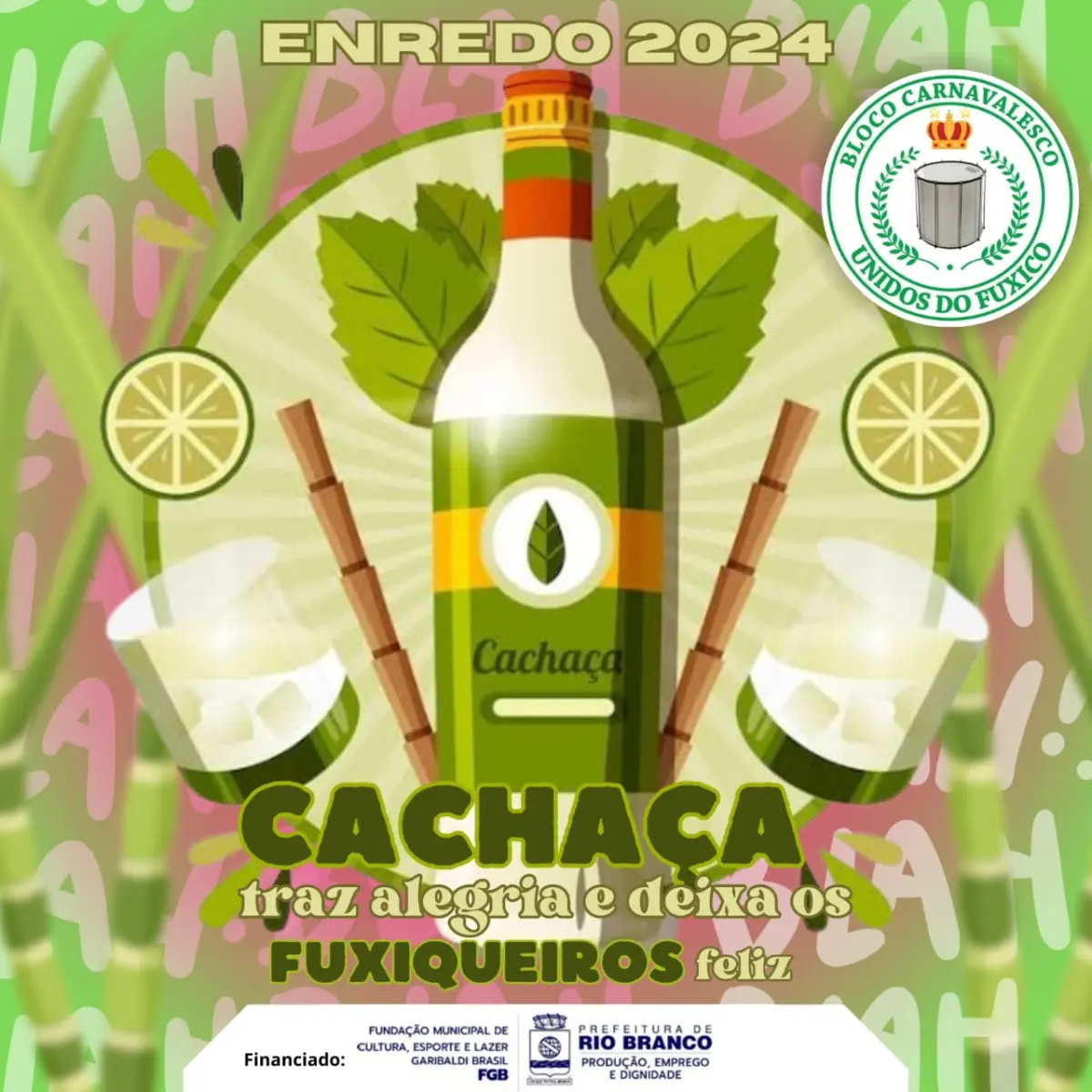 Fundado em 1988, o bloco carnavalesco Unidos do Fuxico, no ano de 2024, traz para a avenida o samba-enredo: “Cachaça traz alegria e deixa os fuxiqueiros felizes”.