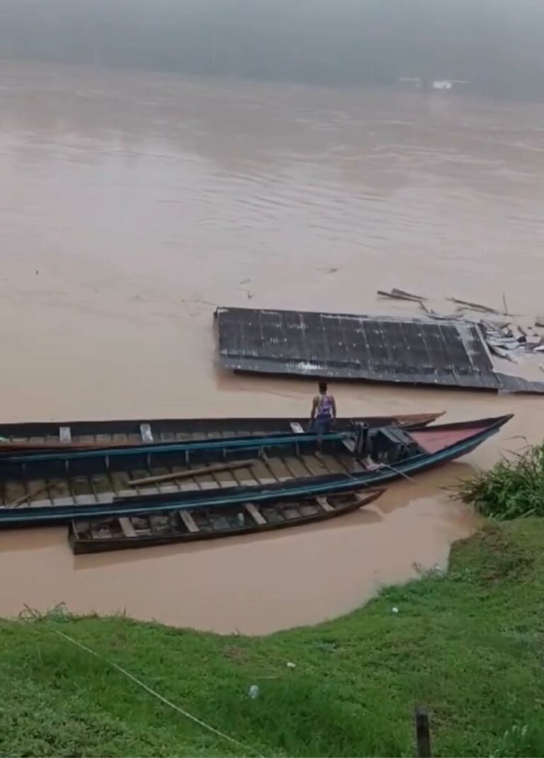 Imagens que circulam na internet mostram o exato momento em que uma casa inteira é arrasta em meio à correnteza do Rio Juruá, em Marechal Thaumaturgo.