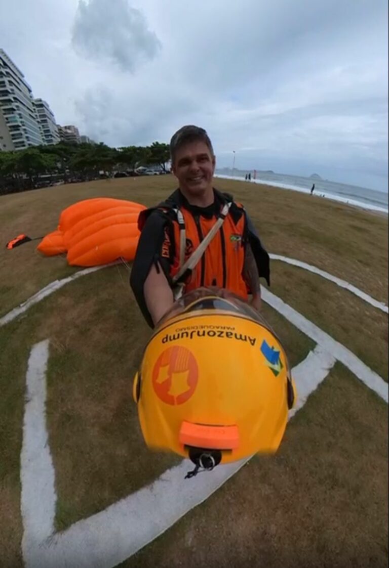 Entre os atletas estava o Rondoniense Erik Rocha, que prática o esporte a mais de 30 anos, e se tornou um dos paraquedistas mais experientes do Brasil, na bagagem mais de 8 mil saltos entre Skydive e Basejump, em diversas partes do mundo.