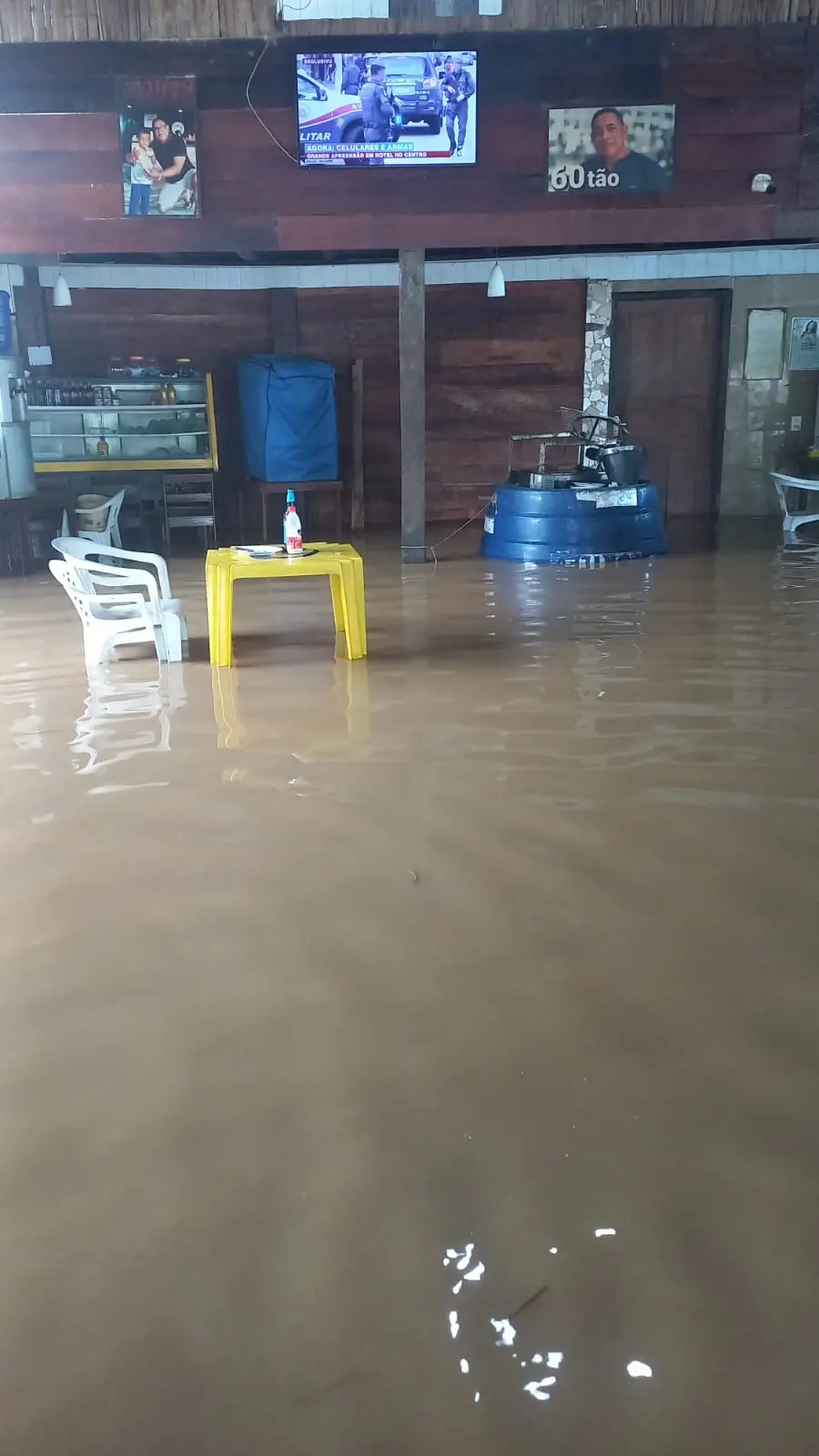 O jornalista também ressaltou que assim que a água baixar, o restaurante voltará a funcionar normalmente. “Tenho fé em Deus que até sábado tudo já vai estar ok”, pontuou. Osvaldo compartilhou com o ContilNet a situação do restaurante e a quantidade de água dentro do estabelecimento.