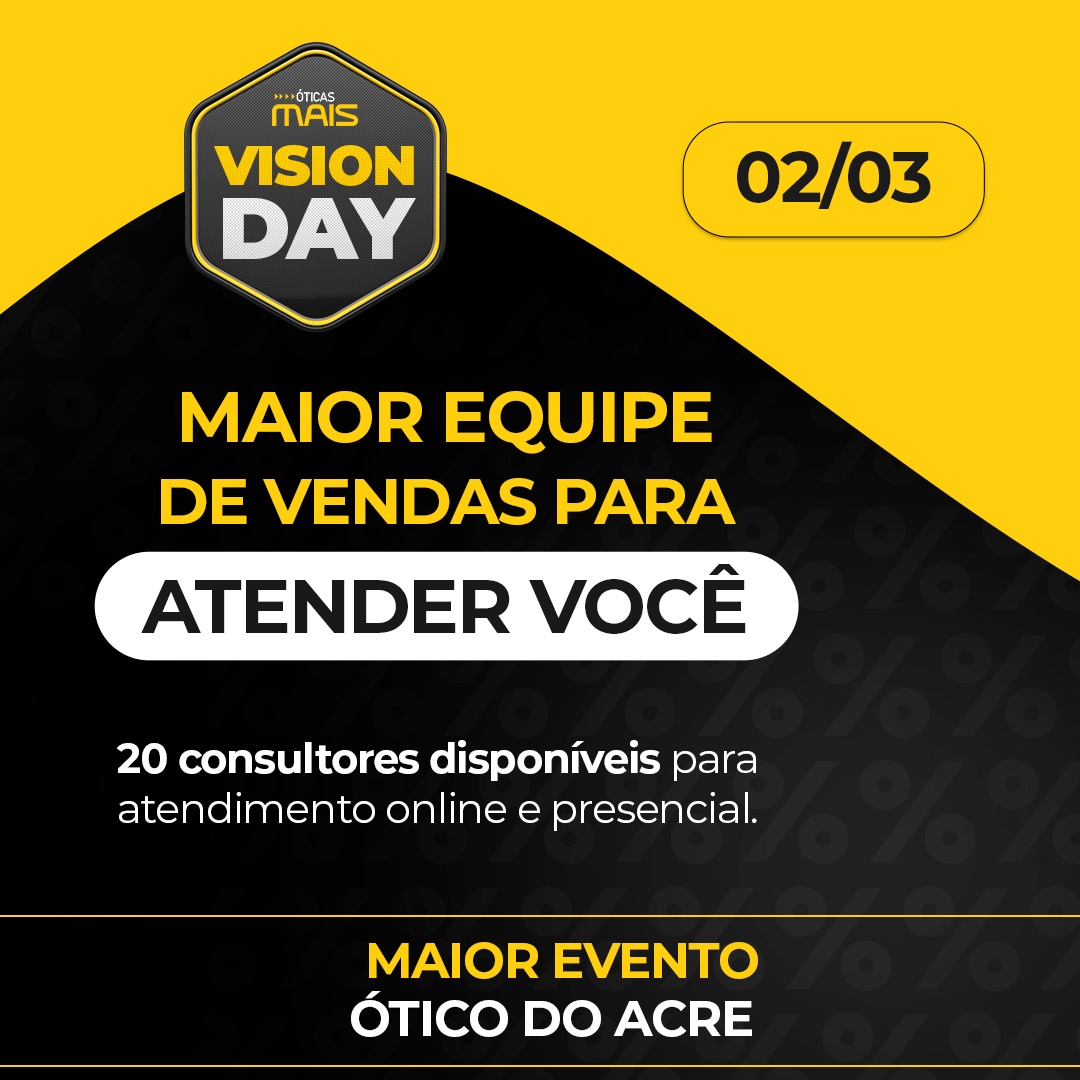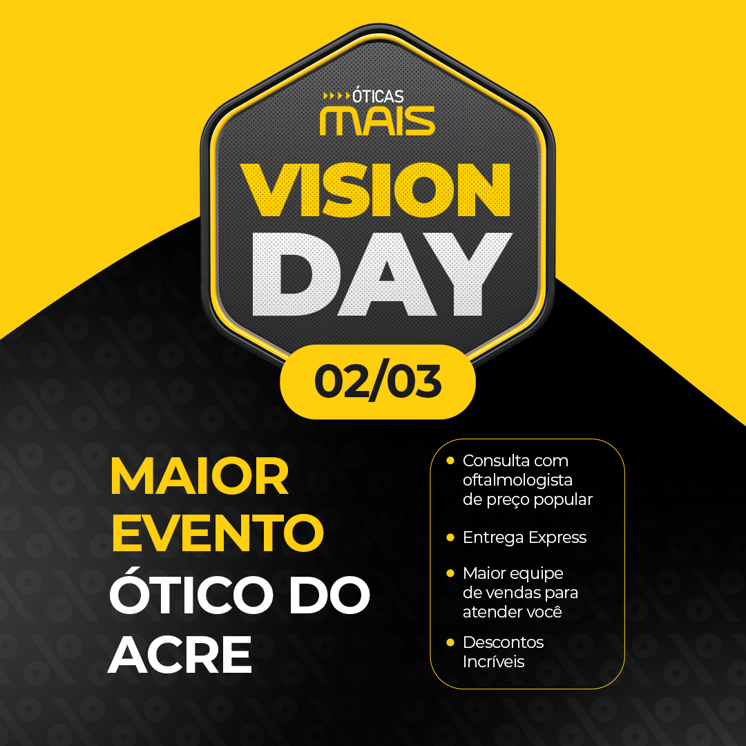 A rede acreana Óticas Mais, presente em cinco endereços no estado, promove, neste sábado (2), uma ação que visa facilitar o acesso ao cuidado da saúde dos olhos. Segundo a sócia-administradora Francileide Viana, o Vision Day acontece de forma simultânea nas quatro lojas em Rio Branco e na ótica em Cruzeiro do Sul, além do canal virtual pelo WhatsApp.