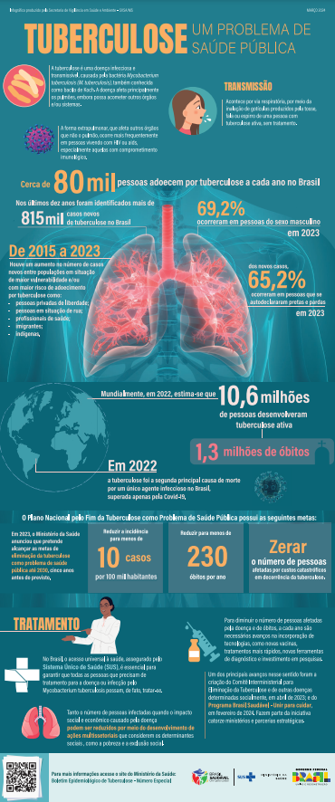 Para continuar o trabalho de conscientização sobre a doença, o Ministério da Saúde lançou a Campanha Nacional de Tuberculose de 2024 com o lema “Tuberculose, não deixe ela parar você”.