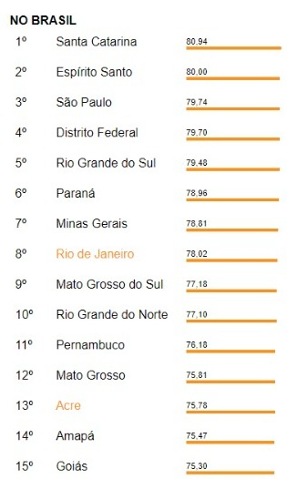 Nos dados de 2023, o estado com maior expectativa de vida para mulheres foi Santa Catarina, com 84,1, e para os homens, São Paulo, com 76,8. Já os piores índices ficaram com Rondônia, marcando 76,1 para as mulheres, e Piauí para os homens, com 67,8.