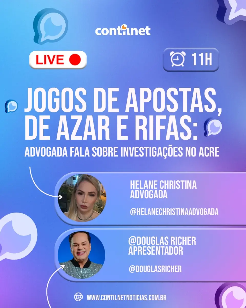No cenário jurídico e social do Acre, os jogos de apostas, de azar e as tradicionais rifas têm despertado um interesse crescente. Para trazer esclarecimentos sobre as investigações em curso relacionadas a essas práticas, a renomada advogada Helane Christina estará em uma live exclusiva nesta quarta-feira, às 11h, no perfil do jornalista Douglas Richer no Instagram.