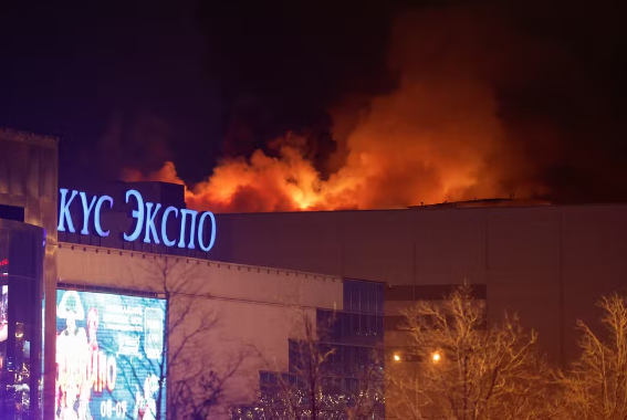 Foram ouvidas duas explosões no local, e o local pegou fogo. Os bombeiros conseguiram controlar as chamas, mas, segundo a agência de notícias Tass, o teto do Crocus City Hall pode cair a qualquer momento por causa das explosões e dos tiros. Segundo relatos da mídia russa, aparentemente o teto está caindo.