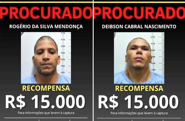 A Polícia Federal passou a oferecer recompensa para quem localizar os fugitivos. Ao todo, o valor por informações que levem à captura da dupla é de R$ 30 mil.