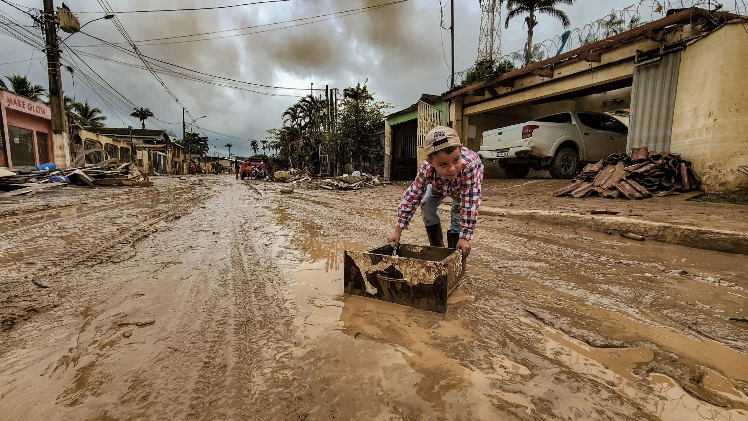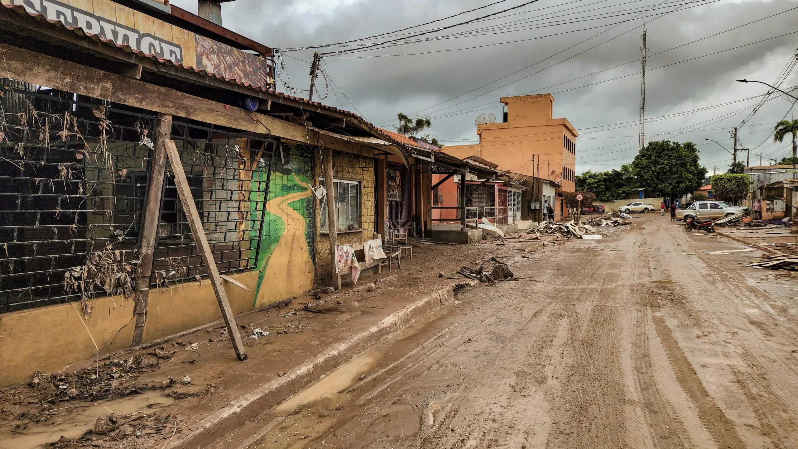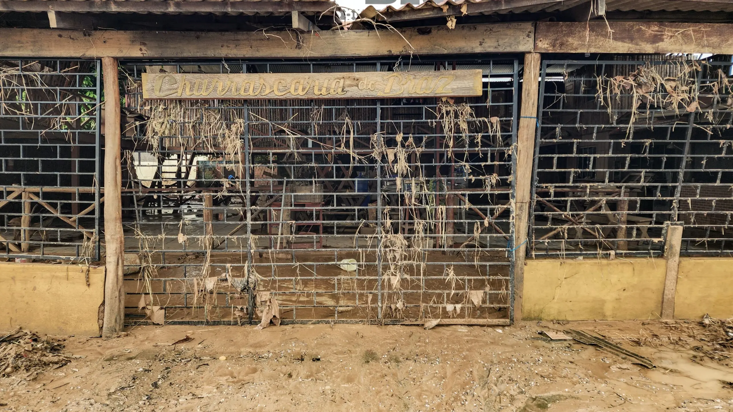 Casas cobertas por lama, órgãos públicos quase destruídos, ruas cheias de entulho e um clima de muita tristeza entre os moradores.