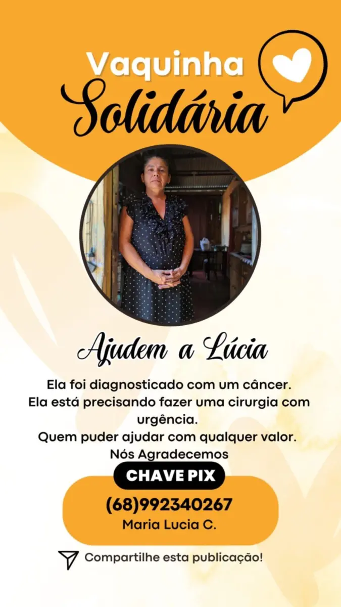 Para aqueles que desejam contribuir com a causa, faça doações diretamente para a família pelo Pix (68) 992340267. Cada ajuda é fundamental para garantir que Maria Lucia receba o tratamento de que precisa e tenha a chance de vencer essa batalha contra o câncer. Veja mais informações e o diagnostico da acreana: