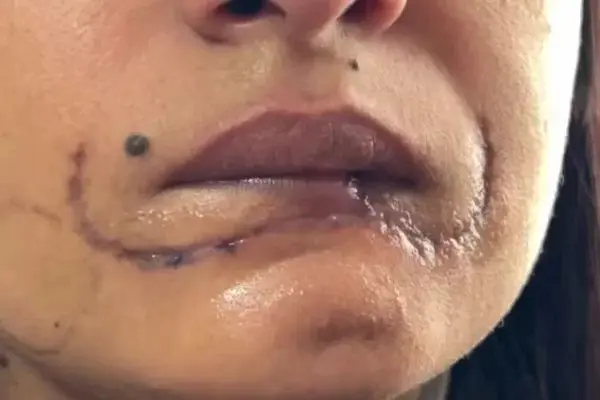 A vítima buscou atendimento médico na Santa Casa da cidade e, depois, foi encaminhada ao Hospital de Base (HB) de São José do Rio Preto (SP). Ela passou por uma cirurgia para reconstruir o lábio e teve alta no último dia 5. O procedimento deixou uma cicatriz de cerca de 15 centímetros na parte inferior e nas laterais da boca.