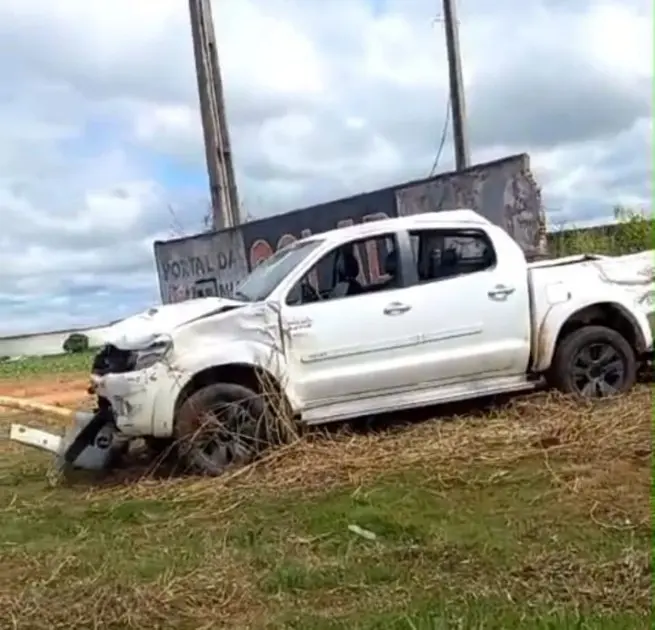 Um vídeo compartilhado em grupos de WhatsApp na manhã deste domingo (24) mostra imagens de uma caminhonete da marca Toyota, modelo Hillux, cor branca, que invadiu e derrubou por duas vezes o muro do parque de exposições do município de Cerejeiras (RO).