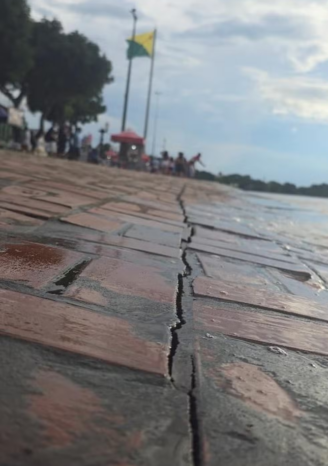 Rachadura que apareceu no Calçadão da Gameleira durante a enchente de 2024/Foto: Defesa Civil Municipal