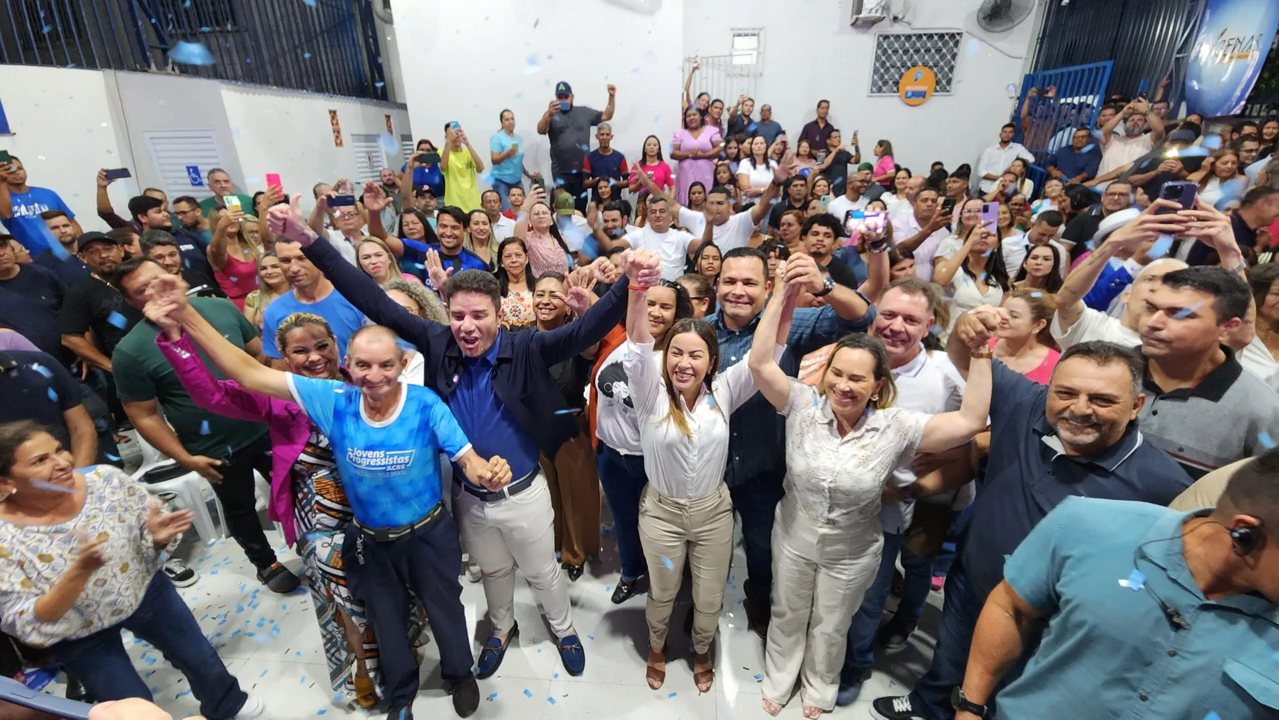 O governador Gladson Cameli filiou nesta segunda-feira (25) a prefeita de Brasiléia, Fernanda Hassem, o vice-prefeito Carlinhos do Pelado e a pré-candidata à Prefeitura de Brasiléia, Suly Guimarães, com festa na sede do partido, em Rio Branco (AC).