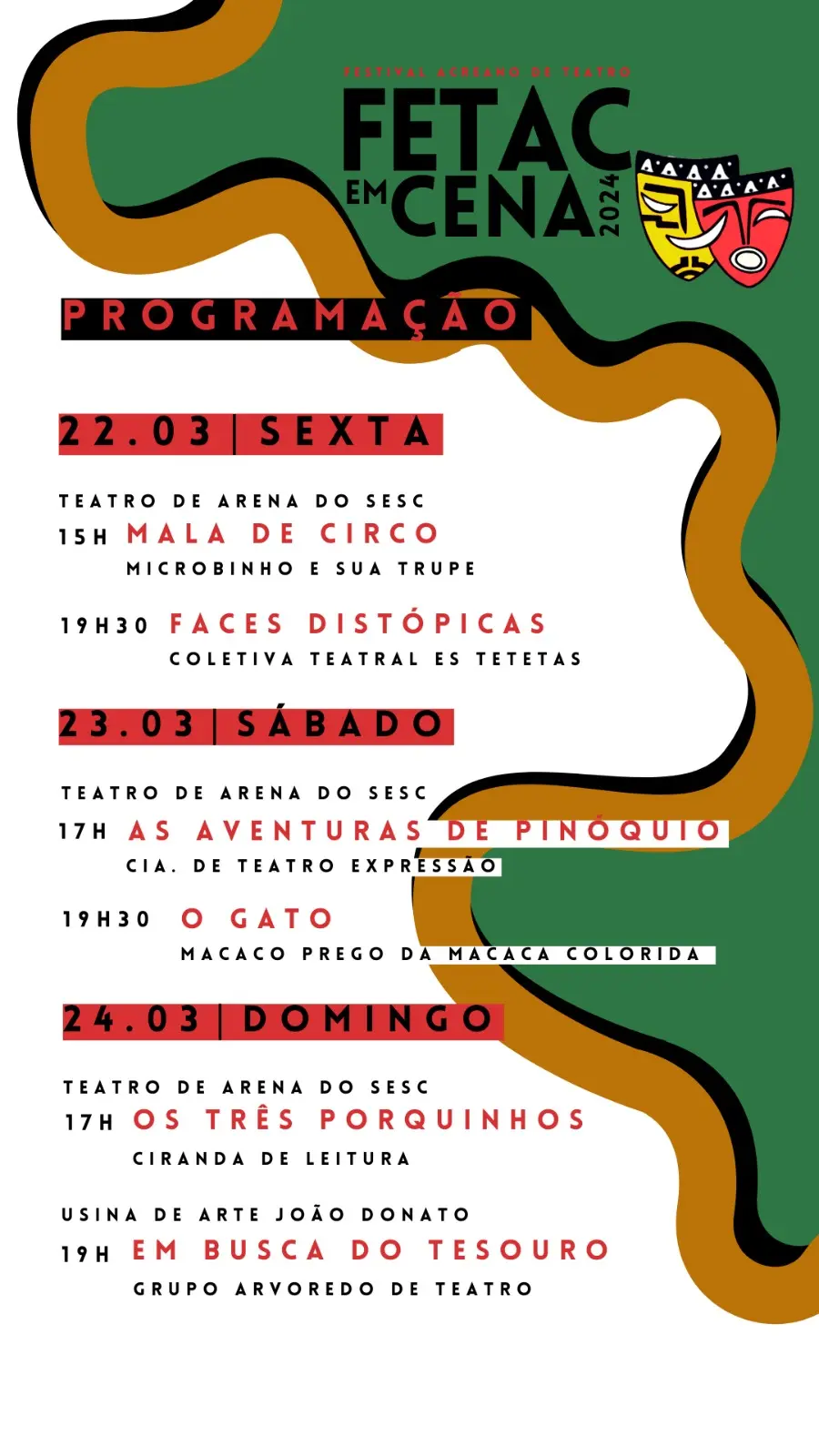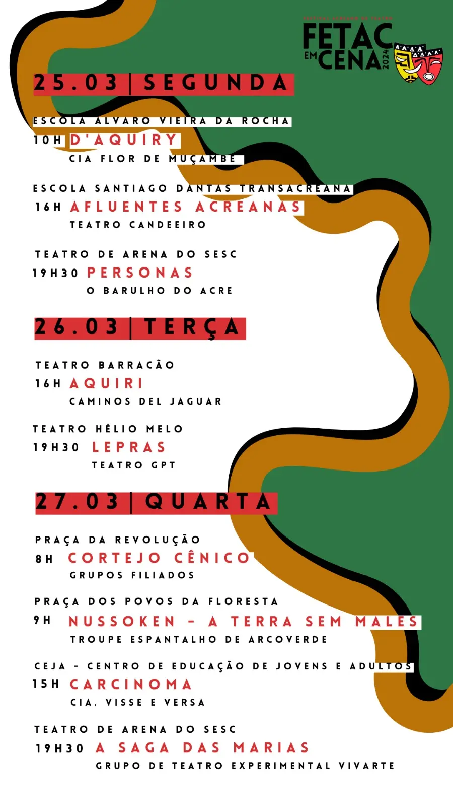 Com vasta programação em diversos locais da capital, as apresentações seguem até a próxima quarta-feira, 27, são gratuitas ao público e têm acessibilidade na Língua Brasileira de Sinais (Libras). A programação completa pode ser acessada na página @fetac_acre, no Instagram.