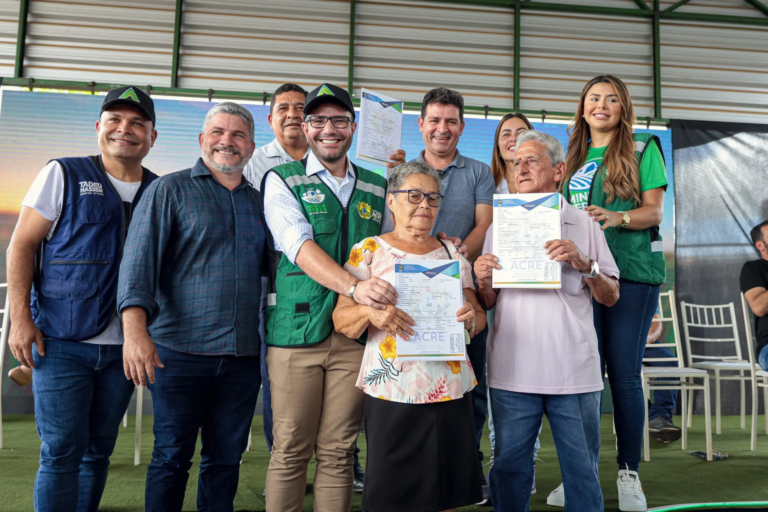 Cerca de 250 novos títulos definitivos foram entregues a moradores de Epitaciolândia, em um comunidade que inclui a Escola Estadual Luiz Gonzaga da Rocha, a Escola Municipal José Hassem Hall Filho, o Parque Ecológico Wilson Pinheiro e 10 imóveis rurais no Polo Agroflorestal.