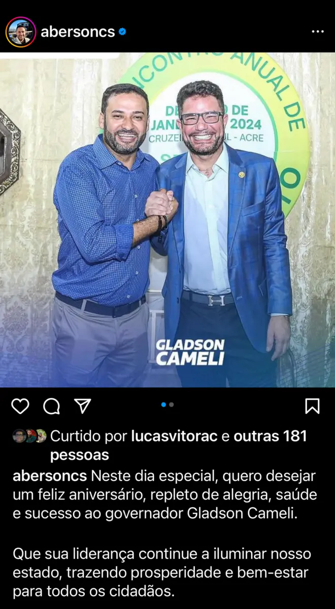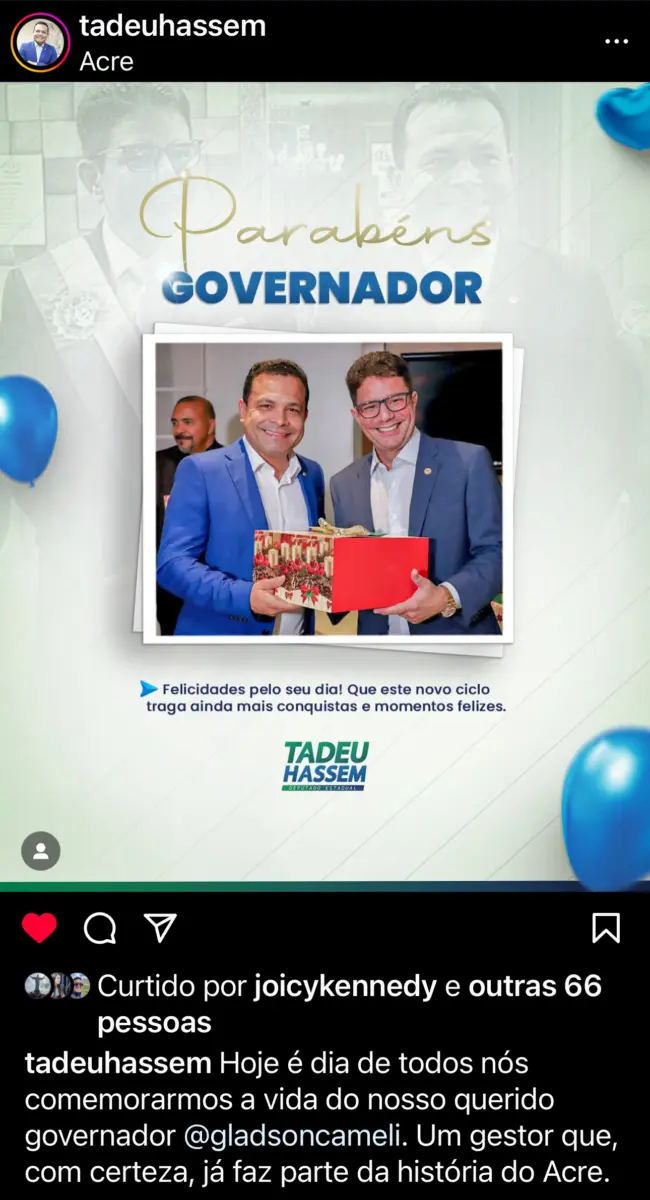 A comunidade online não ficou de fora, demonstrando seu carinho e apoio ao político acreano por meio de uma avalanche de mensagens de aniversário. A população não poupou esforços para mostrar seu afeto por Gladson Cameli, ressaltando sua importância e dedicando palavras de gratidão e admiração.