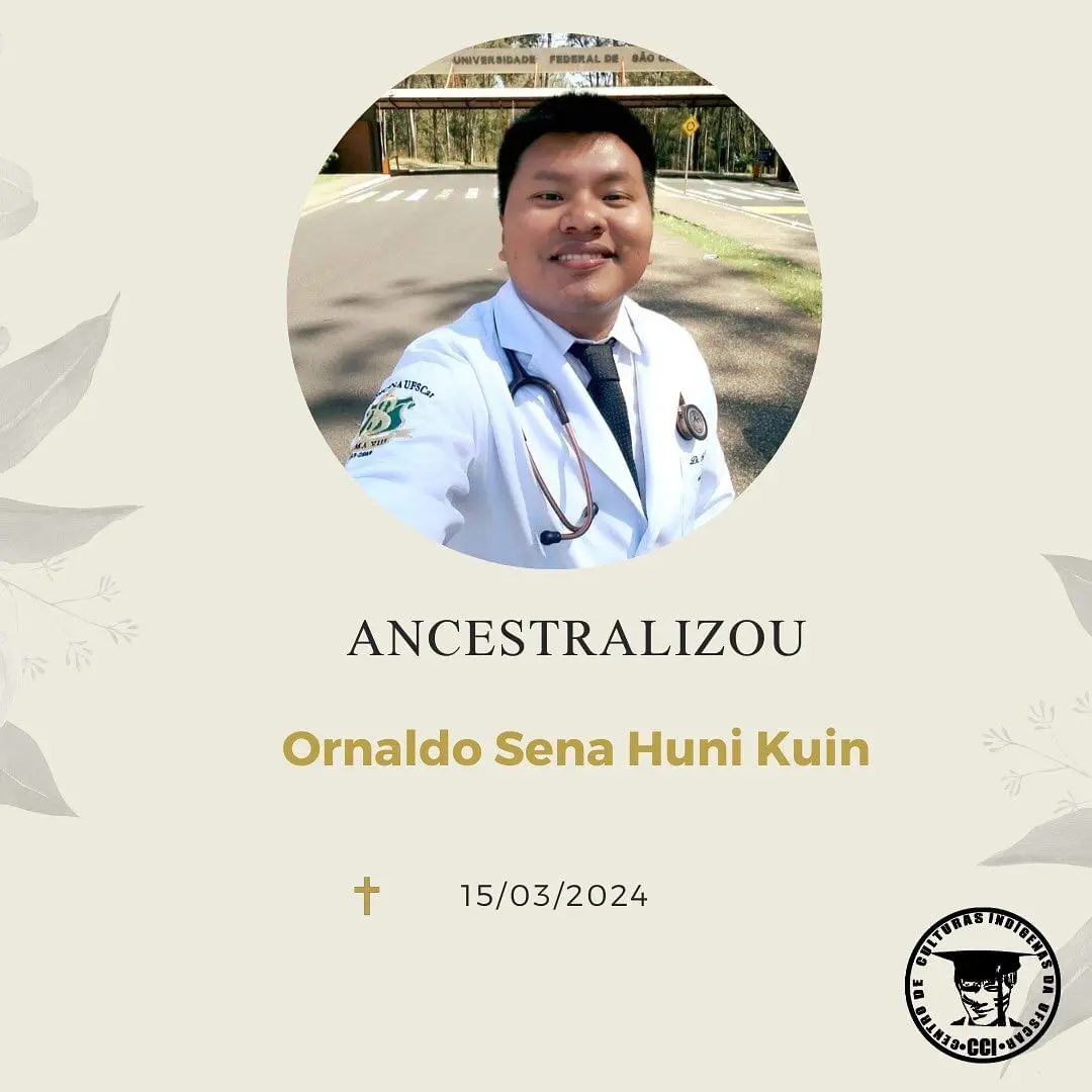 “É com profunda tristeza que o Coletivo Indígena da UFSCar recebe a notícia do falecimento do Parente Ornaldo Huni Kuin, egresso do curso de medicina, um membro querido e respeitado de nossa comunidade. Ornaldo foi mais do que um colega, ele era uma inspiração, uma voz forte em prol dos direitos indígenas e um amigo leal para todos nós.