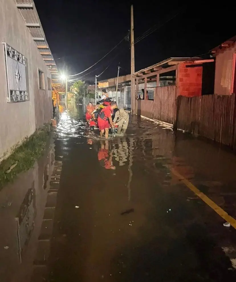 Uma equipe do Corpo de Bombeiros foi acionada e precisou utilizar um jet-ski para fazer o transporte da grávida, de sua residência, até a viatura do Serviço de Atendimento Móvel de Urgência (Samu).