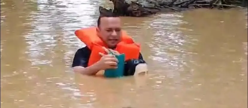Antônio Menezes, padre responsável pela Paróquia de São Sebastião, no município, foi registrado enquanto realizava uma oração em meio às águas, agarrado à estrada.